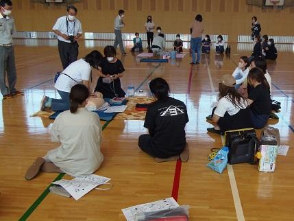 参観後は、淡路広域消防署の方に指導をいただき、救急法講習会を実施しました。保護者と一緒に実施するのは3年ぶりとなります。参加された1年生の保護者の方々は一通りの説明を聞いたあと、率先してペアの人と一緒に声を掛け合い心肺蘇生とAEDの操作に取り組んでいました。お忙しい中、ご参加ありがとうございました。大切な命を救う救急法、何度体験しても身が引き締まります。PTA役員の皆様、今回も大変お世話になりました。