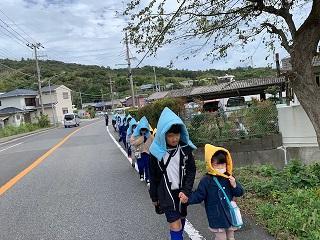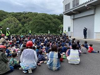 本日、子ども園との合同防災訓練を実施しました。南海トラフを震源としたM9.0の地震が発生、淡路島南部に大津波警報が発令されたと想定した訓練です。緊急地震速報(訓練)が流れると、子どもたちは安全確保のためすぐに机の下へもぐりました。安全確認後、教職員がハンドマイクで避難を呼びかけました。通行できない廊下や階段を避けて、グラウンドへ避難しました。児童の安否確認と二次避難所の安全確認後、小学生が園児の手をとって二次避難所へ避難しました。子どもたちはみな落着いて行動したので、津波の第一波到達予想時刻までに二次避難所へ着くことができました。では、本当に大地震が発生した時はどうでしょう。避難時は、余震、家屋の倒壊、道路の寸断、土砂災害等の危険が予想されます。子どもたちには、本当ならどんな危険があるか考えながら訓練に参加してほしいことを伝えました。訓練後は、福良子ども園、三原警察、南あわじ市危機管理課等の方々と訓練を振り返ったりハザードマップで土地の様子を確認しながら二次避難場所について検討したりしました。三原警察の方からは、子どもたちの訓練に参加する真摯な態度を褒めていただきました。大きく揺れたら、高い場所へ逃げる。自分の命は自分で守る。どんな時も行動にうつすことができる福良っ子であってほしいです。関係機関の皆様、本日はお世話になりました。ありがとうございました。
