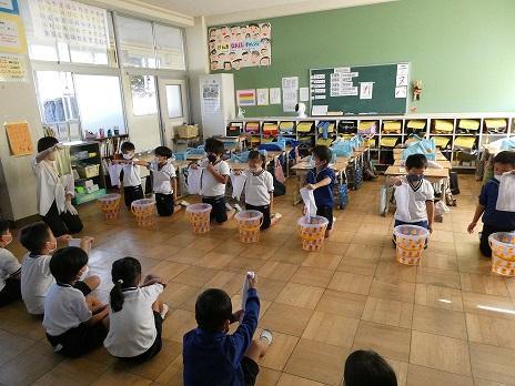 今日は、1年生が「ダスキンおそうじ教室」の出前講座に参加しました。「どうしてそうじをするのだろう」「そうじ用具を正しく使おう」日頃、当たり前に掃除をしている子どもたちですが、この講座では汚れの正体や掃除の意義についてビデを教材で理解し、その後、一人一人ほうきの使い方や雑巾絞り等を体験しながら掃除の仕方を学びました。ふりかえりの感想を見ると、特に雑巾しぼり体験が心に残ったようです。給食後、子どもたちは自分の机を拭くことが習慣となっていますが、教えていたいた拭き方をしている子がいました。ご家庭で子どもたち自身が雑巾を使って掃除する機会はあまりないかもしれませんが、一度どのような絞り方を習ったか聞いてみてください。来週からの掃除の時間が楽しみです。