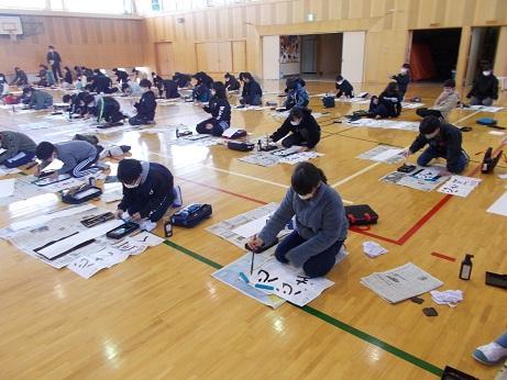 始業式終了後、早速子どもたちは書き初めに取り組みました。厳かな雰囲気の中、心を落ちつけて丁寧に書く姿が印象的でした。