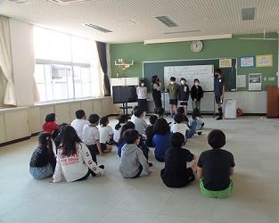 この日、令和4年度のなかよし活動グループ開きが行われました。全校生が学年をこえて、6つのグループに分かれて活動します。早速、6年生が自分のグループの1年生を迎えに行き、顔あわせの会が始まりました。