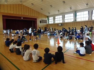 自己紹介がすむと、各グループごとで楽しい活動が始まりました。どのグループからも笑い声が聞こえます。6年生だけでなく、2年生が1年生の子に優しく声をかけていました。こうやって、みんなで集える機会がもてることに感謝です。さあ、運動会は、なかよしグループ6つが3色に分かれて競い合います。今から、子どもたちの活躍が楽しみです。