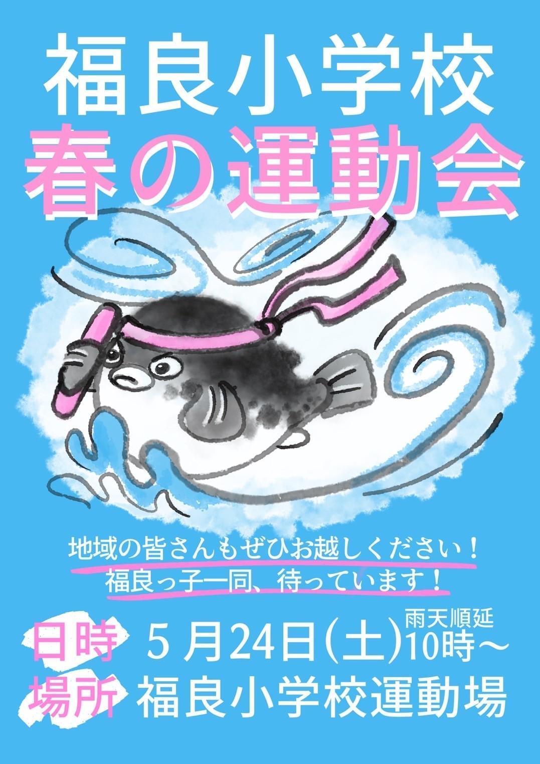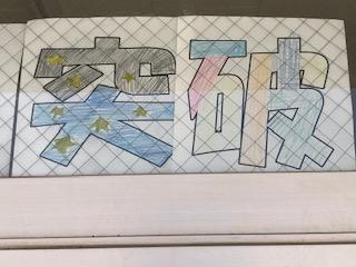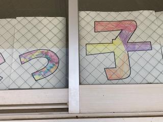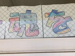 さて、児童玄関に運動会のテーマ「限界突破!福良っ子の魂を見せつけろ!」が掲示されています。これは児童会運営員を中心に企画され、6年生全員で色を塗ったそうです。ただ色を塗るだけでなく、よく見ると目が描いてあったり、文字が磁石になっていたり、人形や扇風機?も描いてあったり、色々と工夫が見られて楽しいですよ!画像を拡大して見てください。