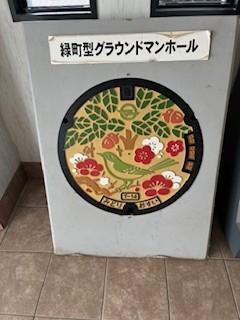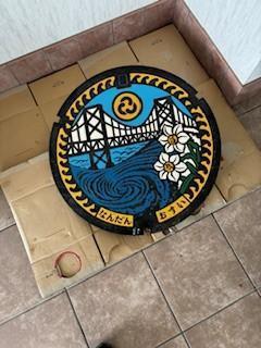 【おまけ】賀集浄化センターの建物の入り口にマンホールが飾ってありました。みなさん、こんなマンホールを見たことはありますか。