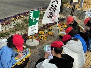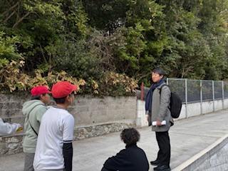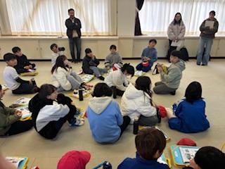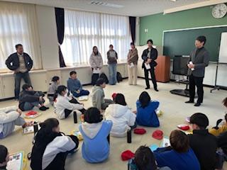 1月15日(木)、5・6校時に5年生が福良地区防災ウォークラリーを行いました。この取り組みに際し、関西大学社会安全学部の奥村与志弘教授と4名の大学生が講師として来校し、防災についての学びを深めました。