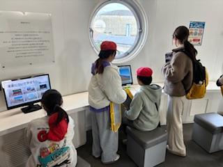 まず、自然学校のときの4つの班に分かれ、福良の町を散策しました。その後、学校に戻り、ウォークラリーで発見したことを振り返り、情報を共有しました。特に「防潮堤の開口部はある方がよいのか、ない方がよいのか」という議論は、とても意義深いものでした。「開口部があると津波が入ってくる」「開口部がないと潮が動かず魚が死んでしまう」など、子どもたちから多様な意見が出されました。奥村先生は「小学校5年生でよく考えますね。きっとこの防潮堤ができる前、福良の方も同じような議論をしたと思いますよ」と話してくださいました。