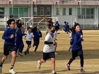 1月15日(木)から、チャレンジマラソンが始まりました。毎週火曜日と木曜日(雨天の場合は金曜日に実施)、10:10~10:30の時間に、基礎体力の向上を目指して運動場を走ります。期間は2月5日(木)まで続きます。