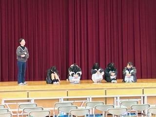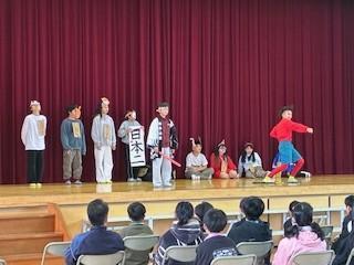5年生は自分たちなりにアレンジした「桃太郎」を演じ、コメディ調の展開で6年生をはじめ全校児童を笑いの渦に巻き込みました。本当に楽しいひとときでした。