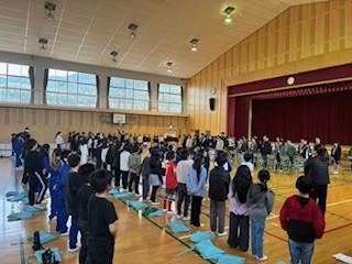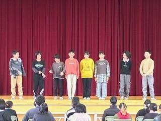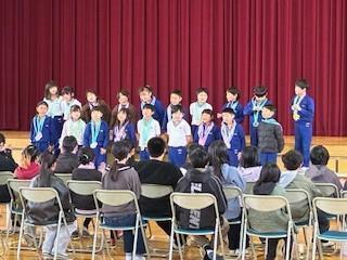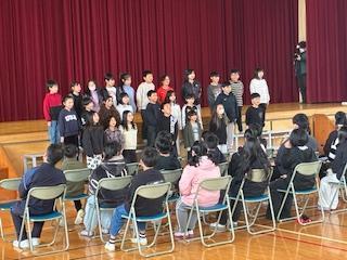 トップバッターは3年生。学年閉鎖明けで練習時間が十分に取れない中、「虹」を大きな声で歌い、最後には感謝の意を込めて「ありがとうございました」としっかりと挨拶をしました。