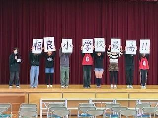 6年生からは、自分たちの小学校生活をテーマにした寸劇が披露されました。これまでの歩みを懐かしく振り返る内容で、福良小学校での生活がいかに大切な時間だったのかが、掲げられたプラカードからも伝わってきました。