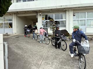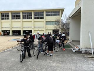 3月6日(金)12:30。6年生が各自の自転車で福良小学校を出発し、南淡中学校で行われたオープンジュニアハイスクールに参加します。中学校生活に向け、少しずつ新しい体験を重ねていく、大切な一歩です。