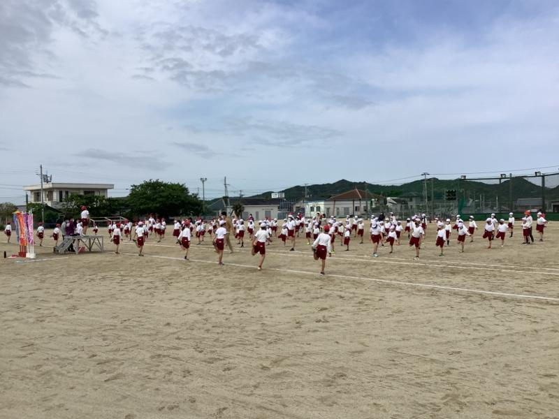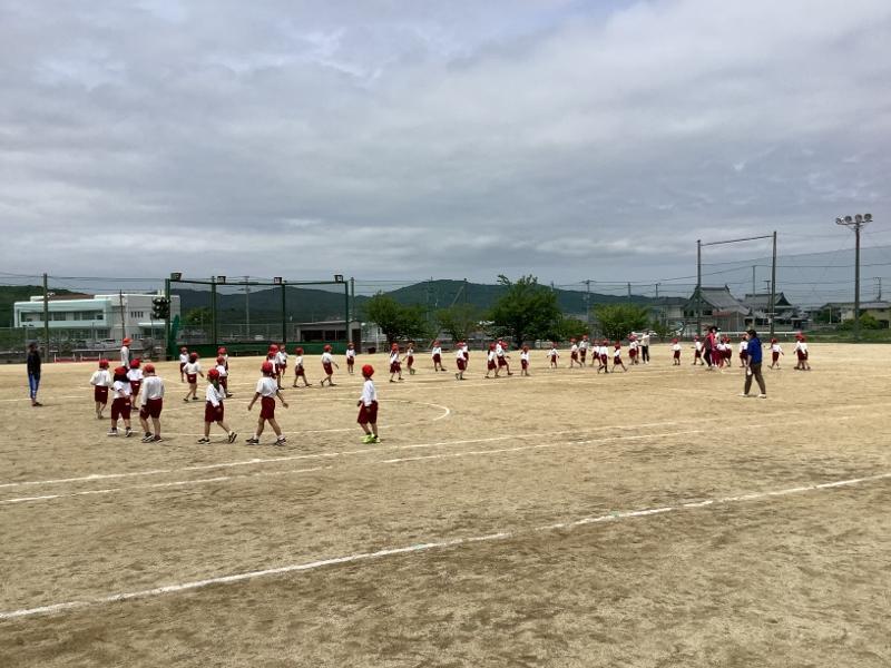 ゴールデンウィークが明け、本格的な運動会の練習に取り組んでいます。心地よく風が吹くさわやかな天候の中、今日は全校練習の後、中学年、低学年、高学年での練習を行いました。先生方からの指導をよく聞き、練習するごとに内容がよくなっています。