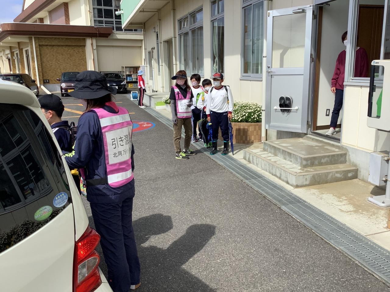 警報発令時や災害時など、非常時において安全に子どもたちをご家族に引き渡すことは、危機管理上とても重要なことであります。本日の訓練について、さっそく教職員でふり返りを行い、改善点や気をつけなければいけない点について共通理解を図りました。今後、非常時に引き渡しをする際には、今日の訓練の反省を生かしてより安全でスムーズに行えるように努めて参ります。今後ともご協力のほど、よろしくお願いいたします。