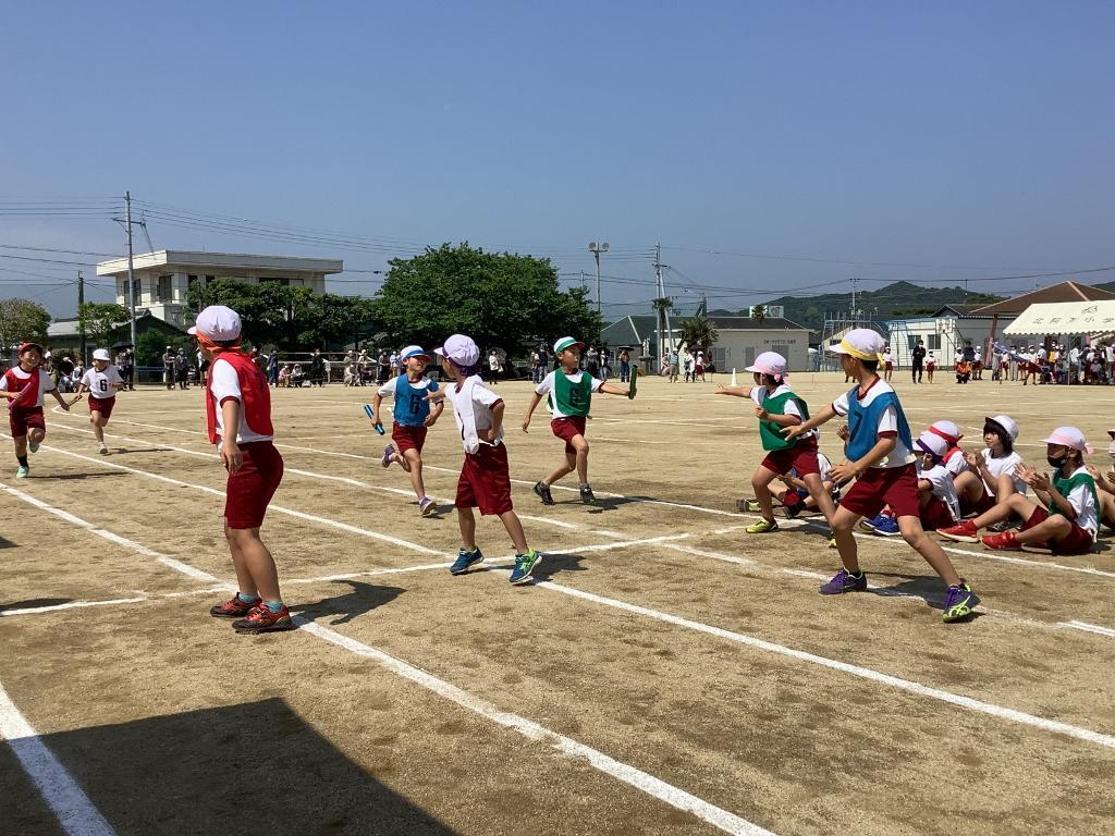 1日順延しましたが、本日は晴天に恵まれ、運動会を行うことができました。約2時間の運動会でしたが、競走競技や表現活動、民舞、競遊と、それぞれの学年層の特色が表され、見応えのあるものとなりました。子どもたちは、これまで練習してきたことをしっかりと発揮でき、たくさんのみなさまにご観覧いただけたことをとてもうれしく感じているようでした。おかげさまで、ケガや体調を悪くする児童もなく、無事に終えることができました。