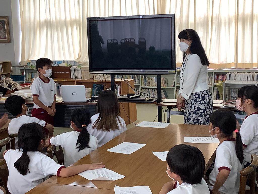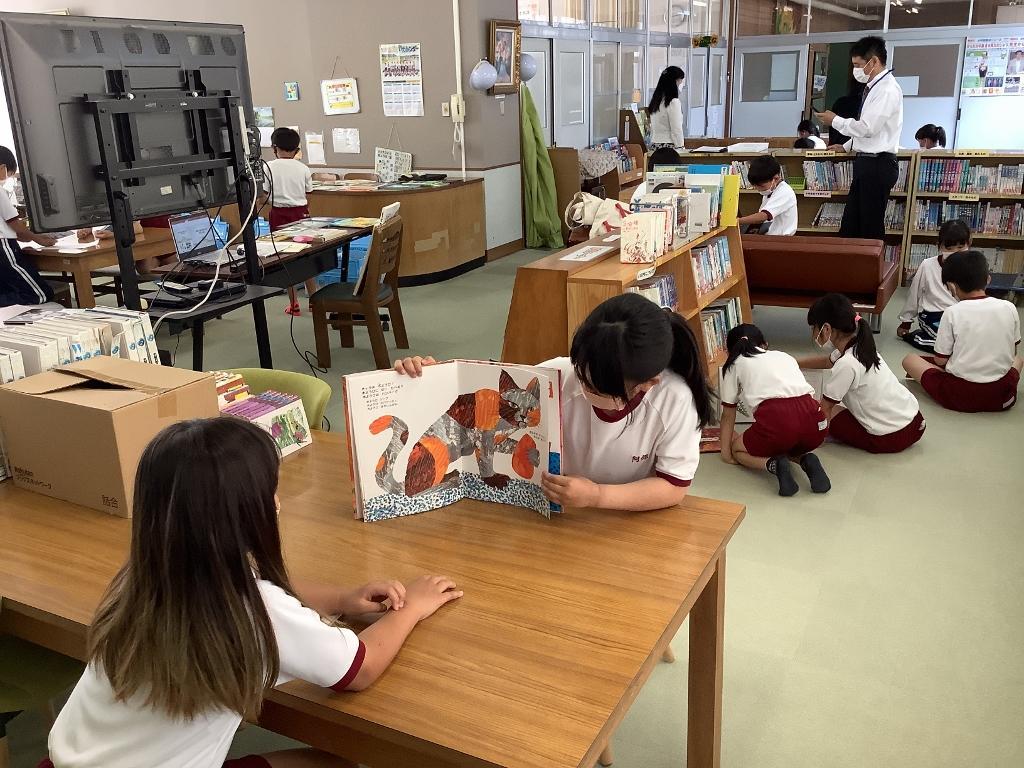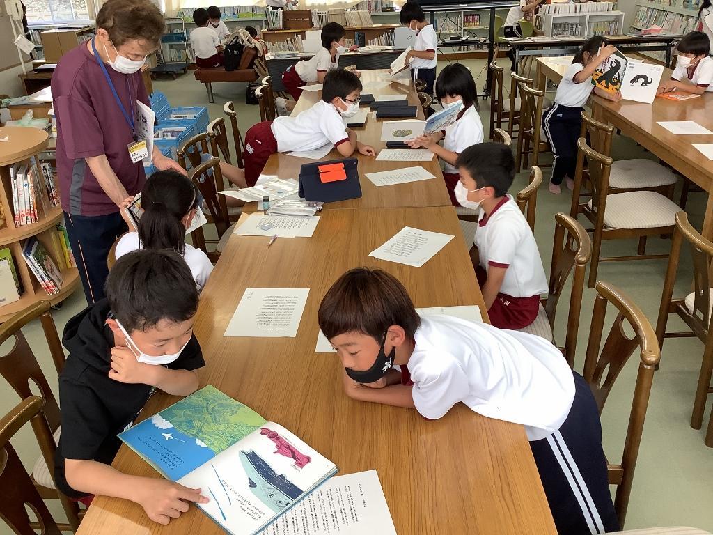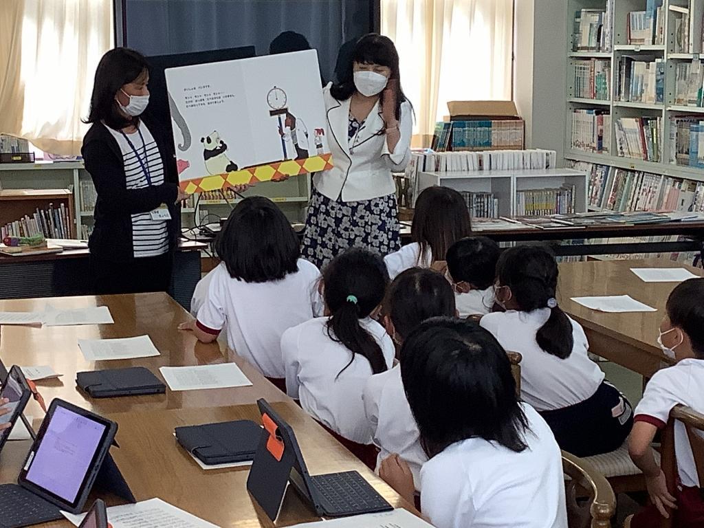 絵本専門士である鳴門教育大学の森慶子先生が、6校時に3,4年生へ「読み聞かせ教室」を行ってくれました。まず、森先生が絵本を紹介しながら、3つのお話を読み聞かせして下さいました。子どもたちは、とても興味深そうに集中して聞いていました。その後、友だち同士で好きな絵本を選び、お互いに読み聞かせを行いました。図書室の広いスペースを有効に活用して、子どもたちは自由に読み聞かせをしていました。読んでいる側と聞いている側、どちらからもいい表情を見ることができ、お互いに絵本を通して心穏やかな時間を過ごすことができました。