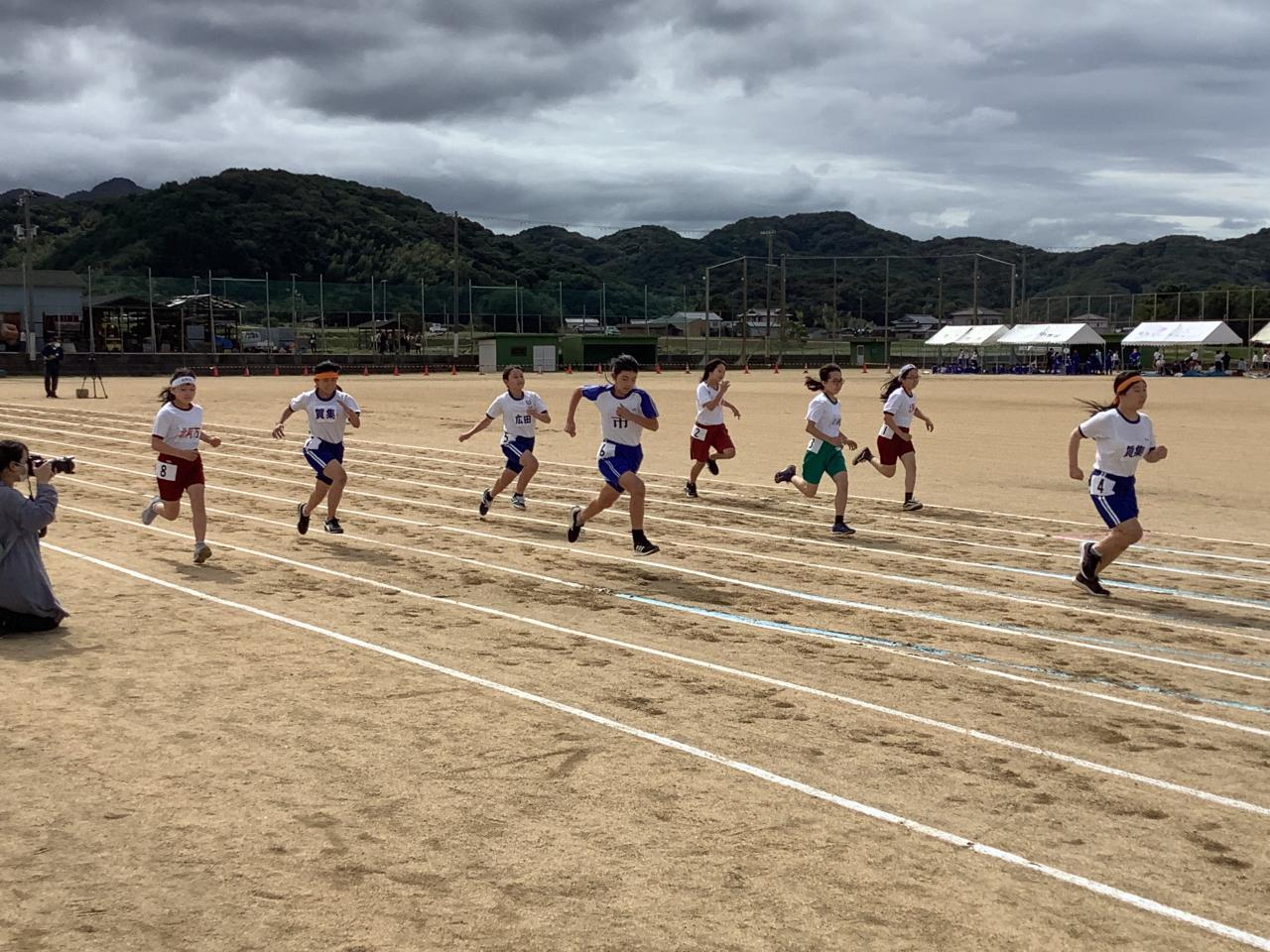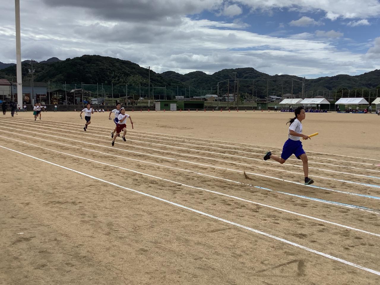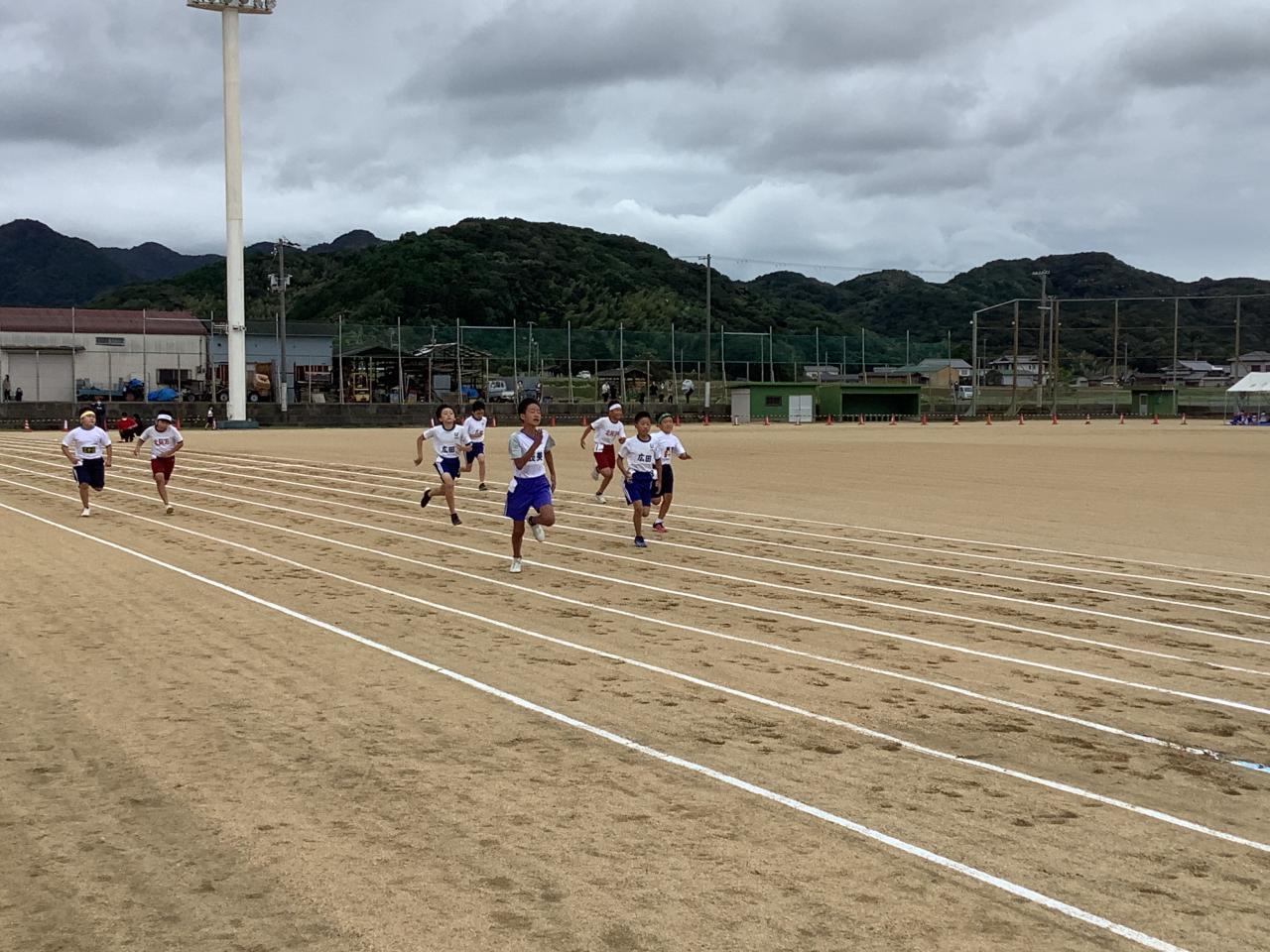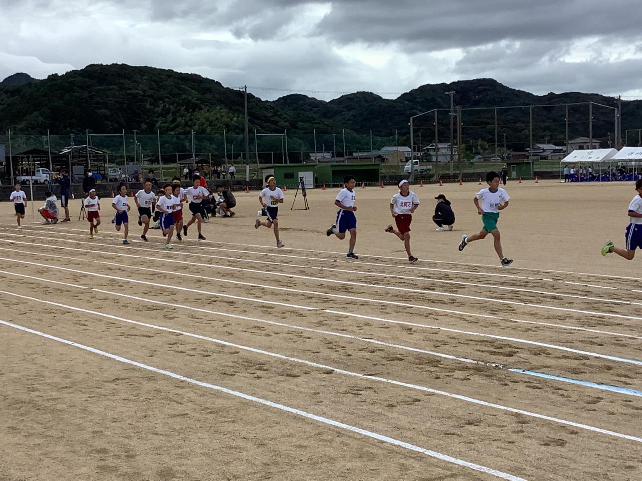 南あわじ市小学校陸上競技大会が、三原健康広場で行われました。昨夜からの雨は上がり、少し肌寒い風が吹きましたが、グラウンド状態はちょうどいい湿り具合で走りやすいコンディションでした。コロナの影響で無観客で行い、6年生のトラック種目だけの大会でしたが、子どもたちはこれまで練習してきた成果を発揮すべく、全力で走りました。自己ベスト記録を更新して喜ぶ姿や、友だちが走っているのを懸命に応援する姿がたくさん見られました。子どもたちは、これまでの練習や本日の大会を通して、仲間を思う気持ちや一緒に努力することの大切さを感じることができたと思います。