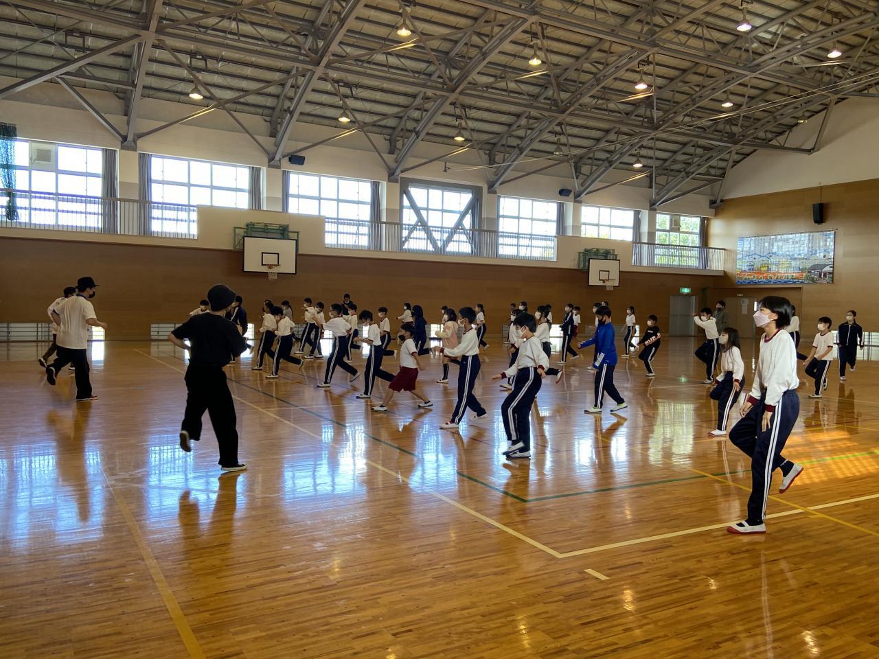 10月27日(木)に行われる芸術鑑賞会では、全校生でダンスのパフォーマンスを見ることになっています。その時に公演してくれる国際文化協会『カルティベイト』の方たちが来られ、5,6年生にダンス講習会をしてくださいました。ダンスを披露してくれた後、同じ動きを指導してくれました。なかなか思うようには踊れませんでしたが、とても楽しそうな表情を見ることができました。当日は、もっと多い人数で舞台装置もあると聞いています。どんなパフォーマンスを見せてくれるのか、とても楽しみです。