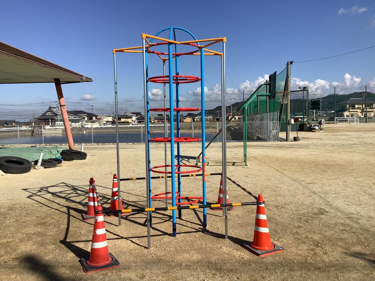 12月より取りかかっていた遊具の整備工事が間もなく終わります。老朽化した遊具は撤去され、新しい遊具が設置されました。また、以前から残った遊具もきれいに塗装されました。本日は点検があり、明日から最終調整をして完成となります。いよいよ来週あたりから、遊具を使って遊ぶことができます。子どもたちが楽しみに待っていた遊具です。まだまだ寒い日は続きますが、きっと子どもたちは外で元気に遊んでくれることと思います。南あわじ市では、学校の校庭を遊び場として開放しています。遊具が完成しましたら、地域の皆様もどうぞお子さまと一緒に遊びにいらしてください。