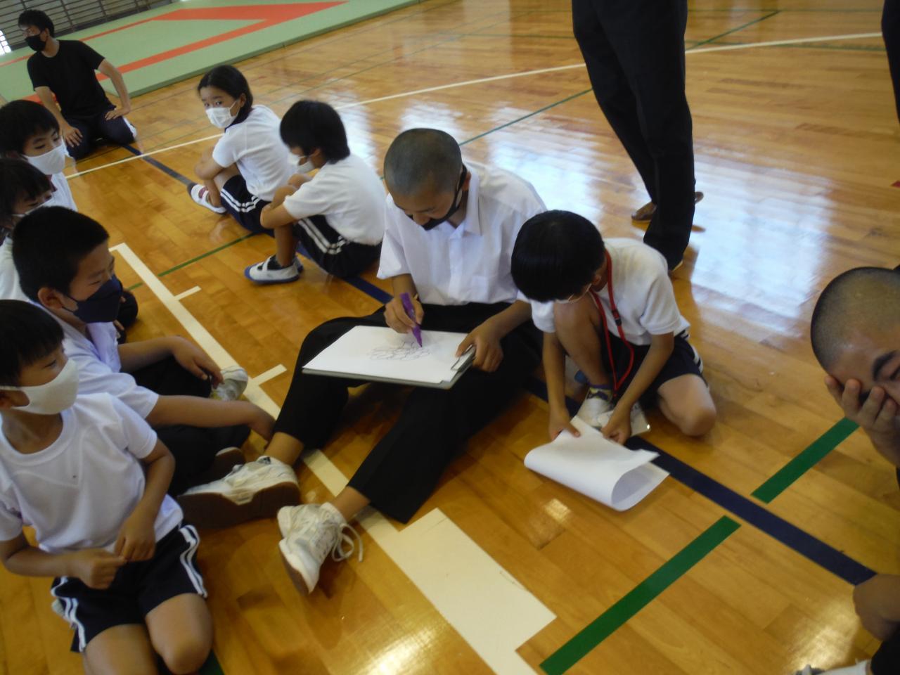 一つめは「フラフープ送り」体の大きな中学生は少し苦労していました。