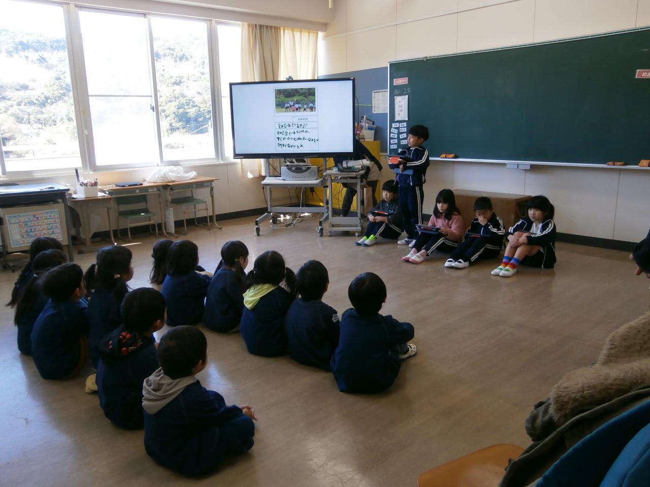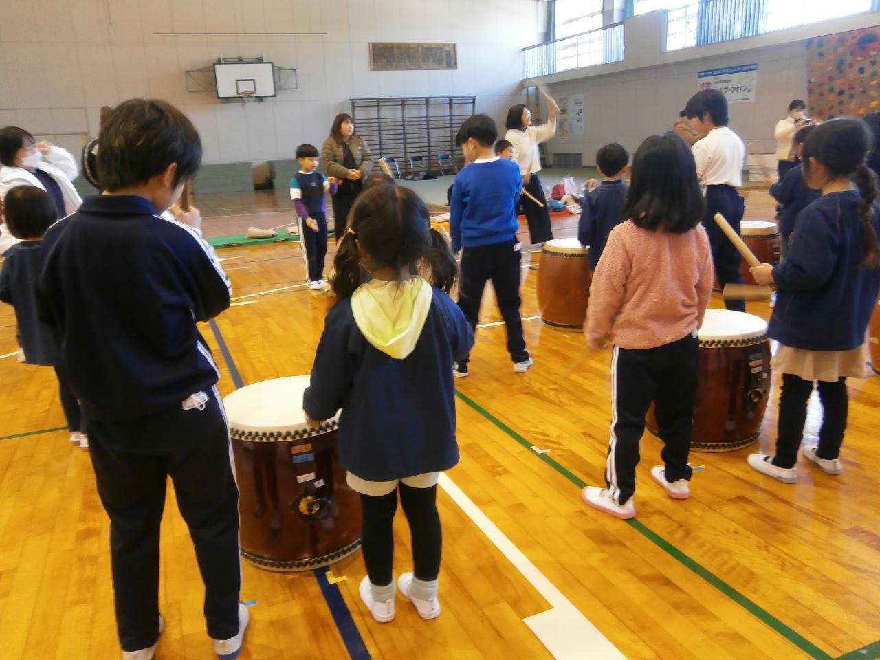 4月に入学予定の木村汐那虎さんの学校を是非見たい!という阿万保育園児の強い希望から実現した交流会。冷たい風が吹く中、元気に沼島へやってきてくれました。沼島子供太鼓で歓迎ムード全開!太鼓も上手にたたいてもらいました。1・2年生教室で交流をして、給食を一緒に食べました。昼休みはドッジボールをしたりキャッチボールをしたり、短い時間でしたが全校生で楽しめました。中学生とキャッチボールする園児もいて、とても微笑ましい光景でした。楽しい時間はあっという間に過ぎてしまい、3~6年生はもっと一緒に交流したかったようです。4月の入学生が増えたらなあ・・・と期待しながらお別れしました。