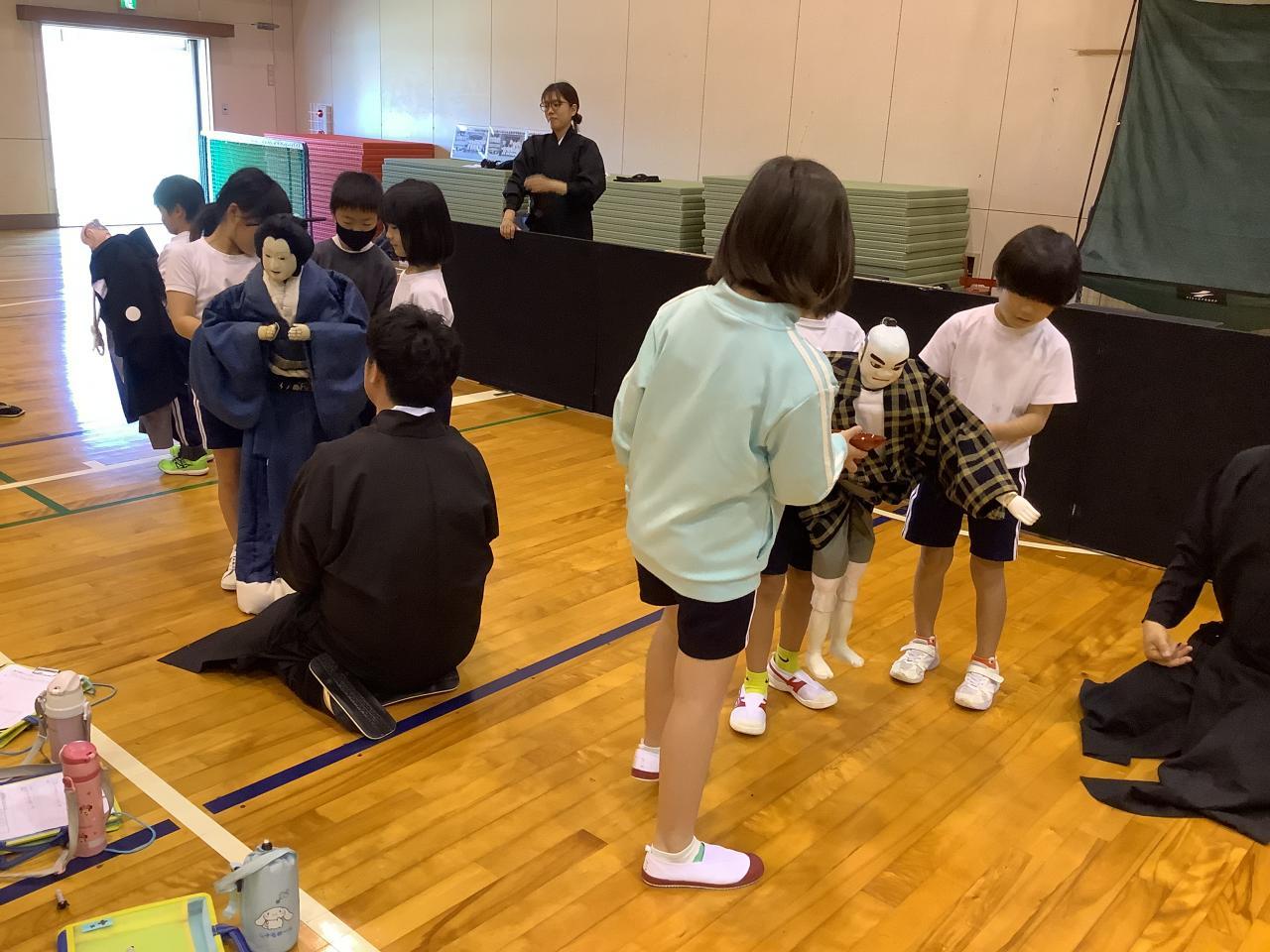 その後、実際に人形に一人一人がふれ、持ち方や動かし方などを教えてもらいました。
