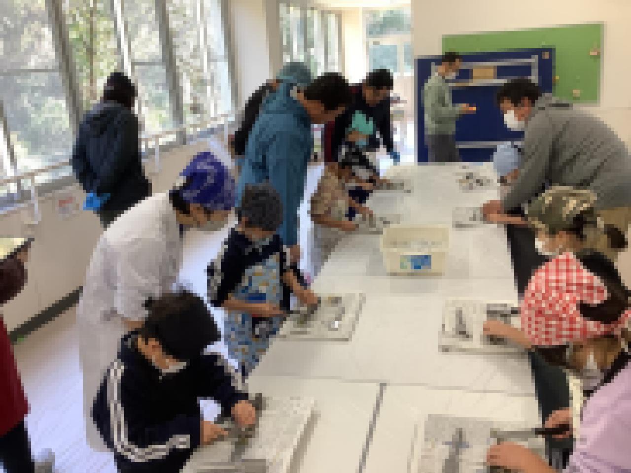 体験が始まると、さばき方の実演もしながら、丁寧にわかりやすく教えていただきました。青年部の皆さんは慣れたものです。子ども達が苦戦しているときも、的確なアドバイスで魚を三枚におろすよう導いてくださいました。また内臓や不要な部分の処理、更には使った道具の片づけまで、あっという間にやってくださいました。本当に沼島の漁師さんはすごいです。