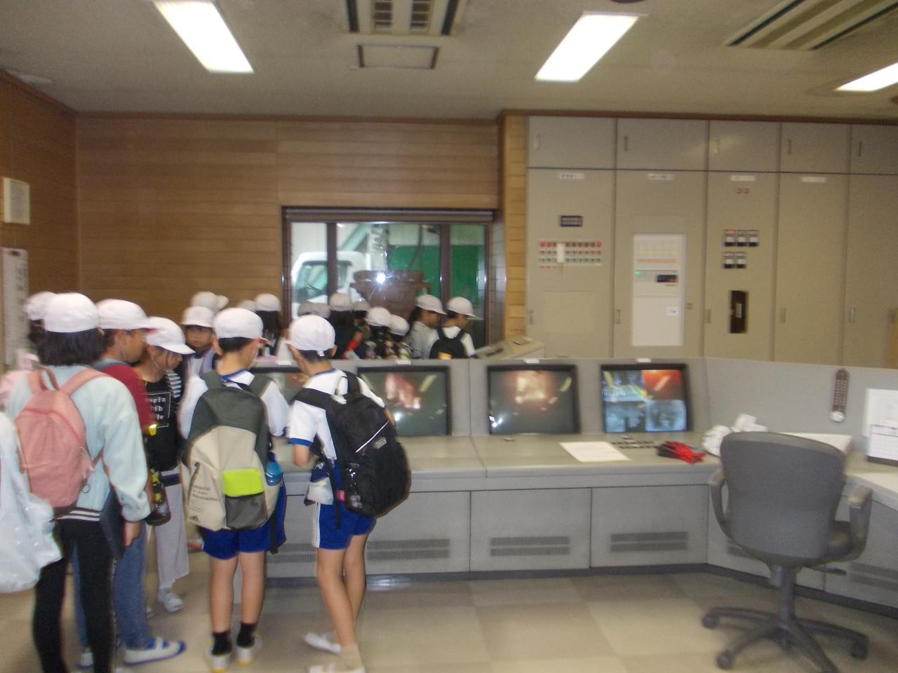 中央制御室の様子です。教科書の写真と同じですが、本物を目の当たりにすることで、さらに学習が深まりました。『ごみ処理と活用』の学習の中で、ごみを減らす工夫やリサイクル、ごみの分別について学びました。学んだことこれからの生活に生かしてほしいと思います。