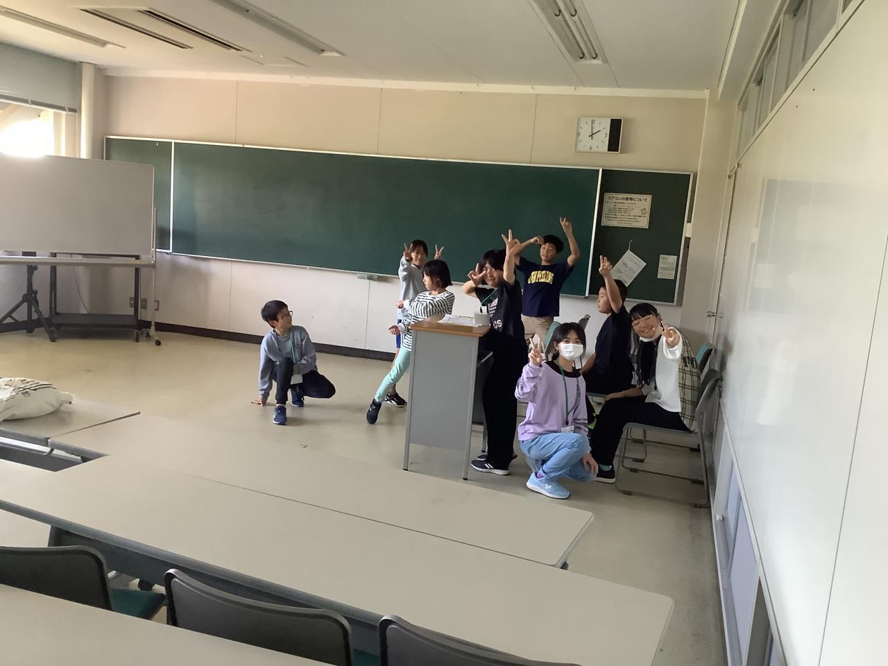 コントの練習をしている班です。お互いで、意見を出し合いより良いものを作り上げているところです。