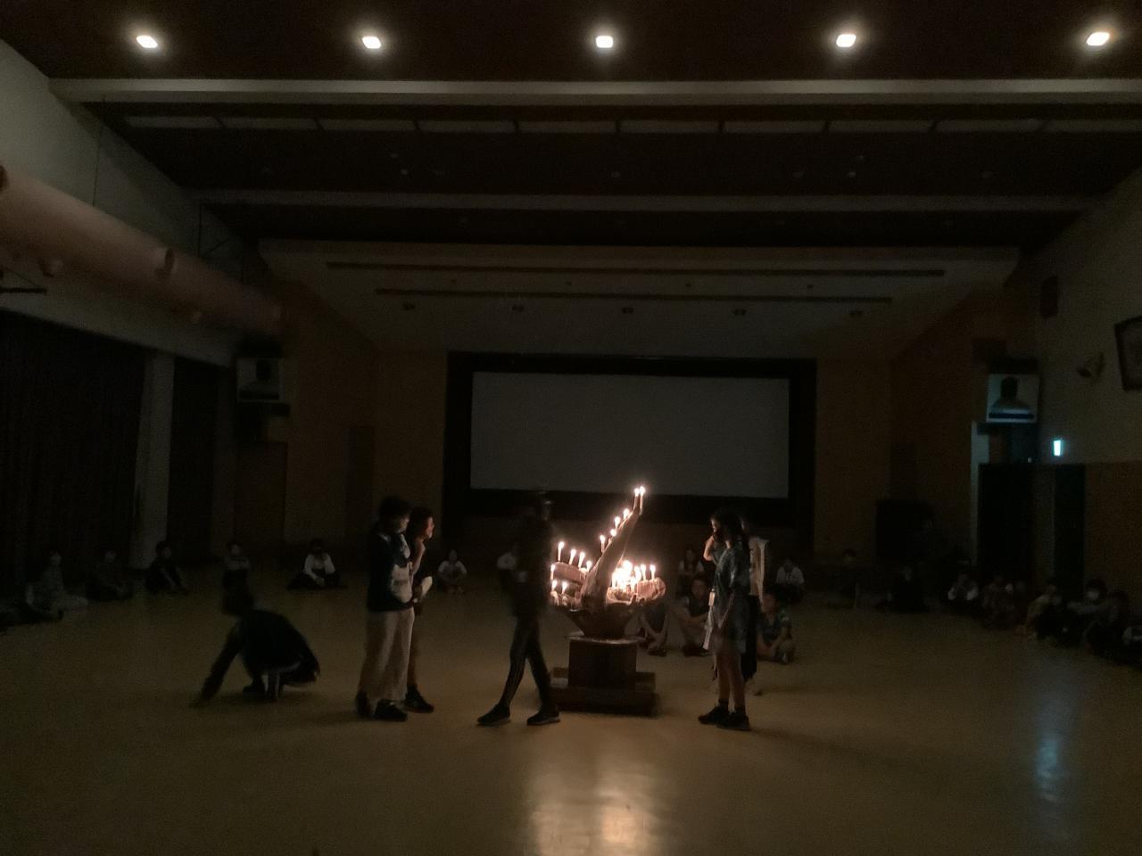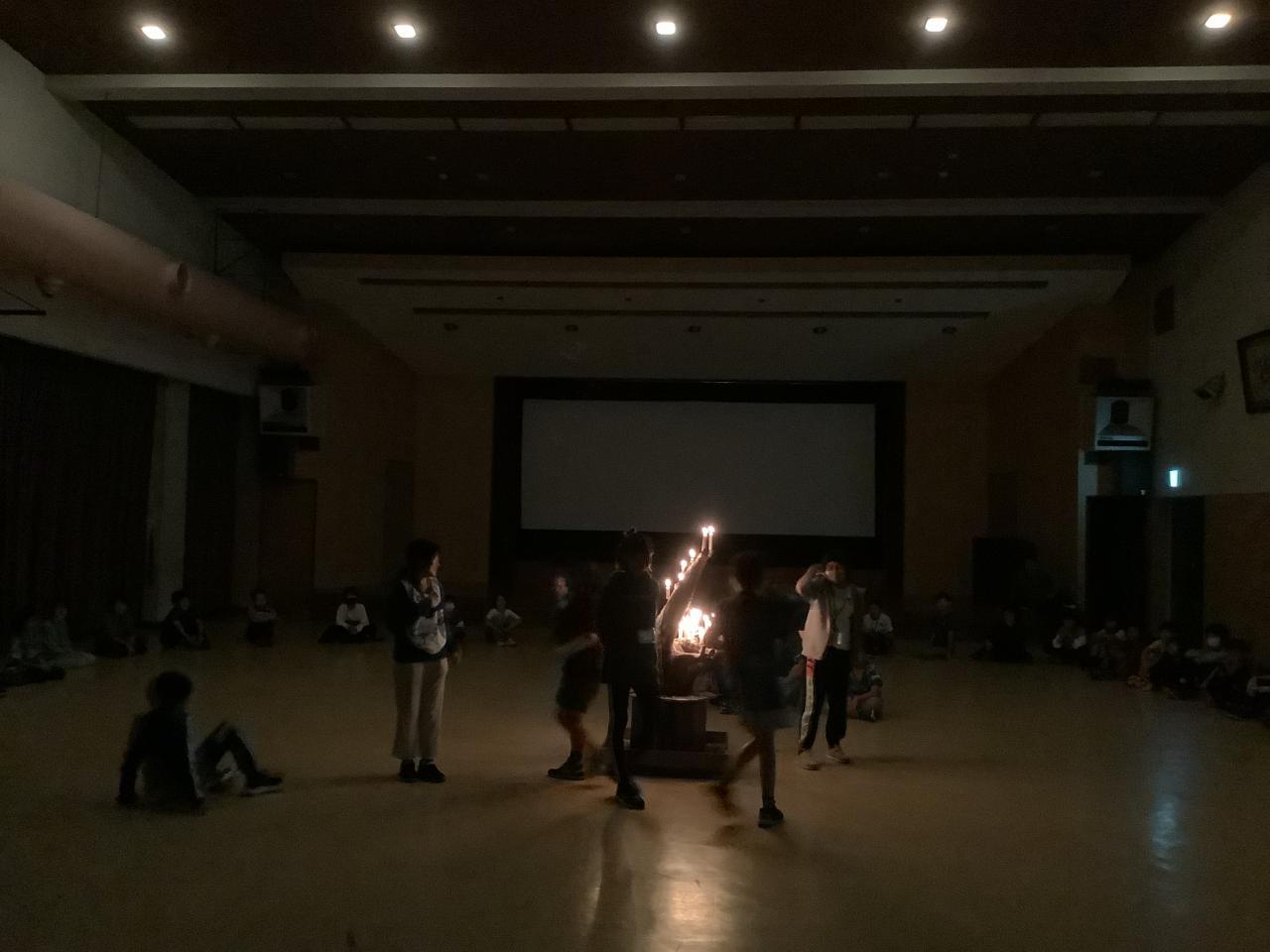 キャンドルサービスの最後は、ロウソクの炎を見つめ、自然学校の振り返りをしました。リーダーの語りかける言葉にたくさんの児童が感動し涙を流していました。男子の中にはこの後、部屋に戻ってベットの上でも泣いている人がいました。この自然学校のキャンドルサービスの感動は一生の思い出になるとともに心の支えにもなると信じでいます。