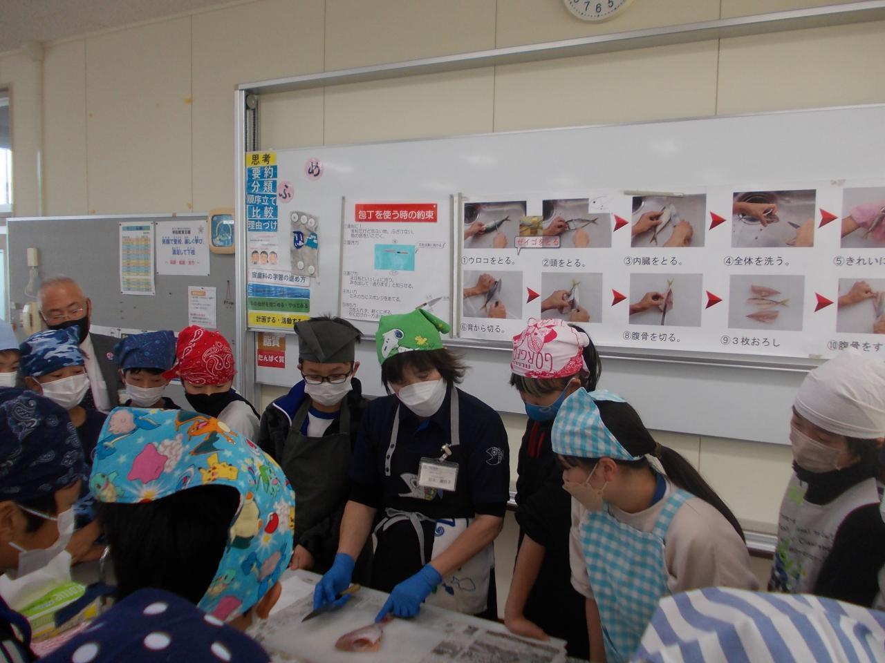 「お魚料理教室」が11月16日(木)に兵庫県漁業協同組合の皆様におせわになり6年生を対象に開催されました。