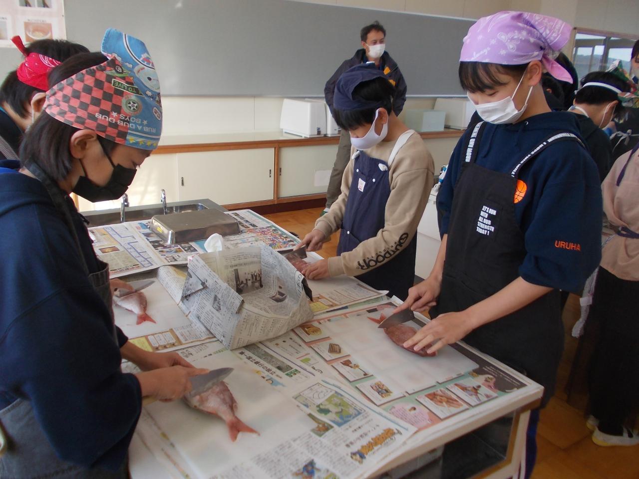 内臓を取ったり、頭を切り落としたり、腹骨をすいたりみんな本当に真剣によく頑張りました。