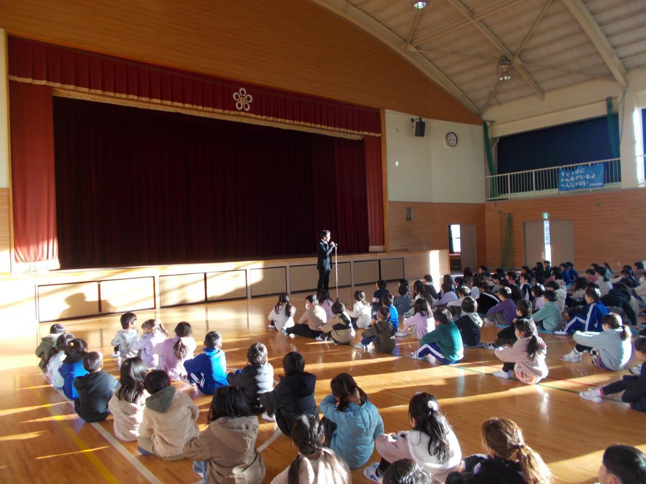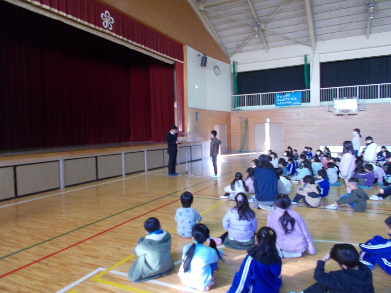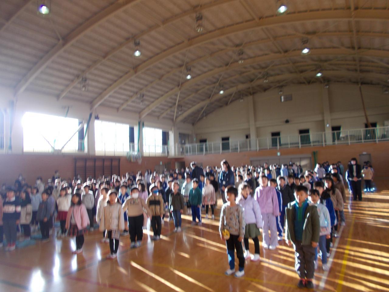 12月22日(金)2学期終業式が体育館で行われました。朝の冷え込みが厳しく、健康面を配慮して防寒着着用で行いました。