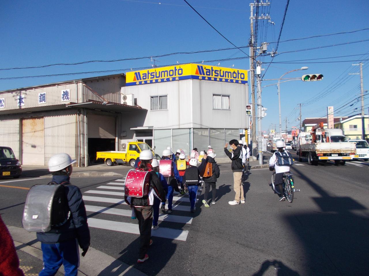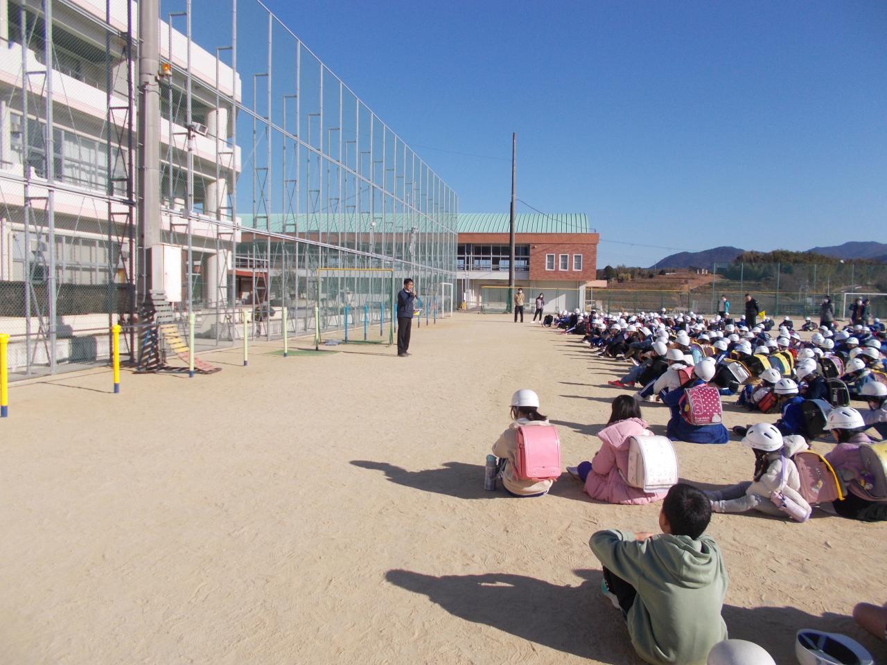 〇今年最後の集団下校です。避難訓練でも自分の命を守ることをお話ししましたが、今日は帰りながら『今、地震が起こったら危ない箇所はないか、どのような身を守る行動をとるか』を考えてほしいと思います。また、県道は交通量が多いです。横断には十分気をつけてほしいと思います。