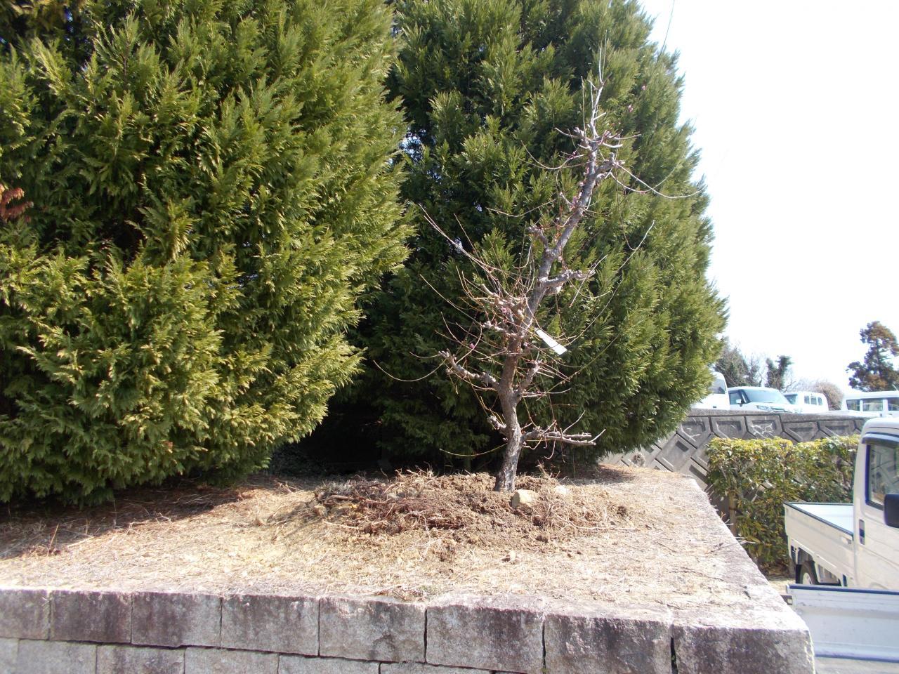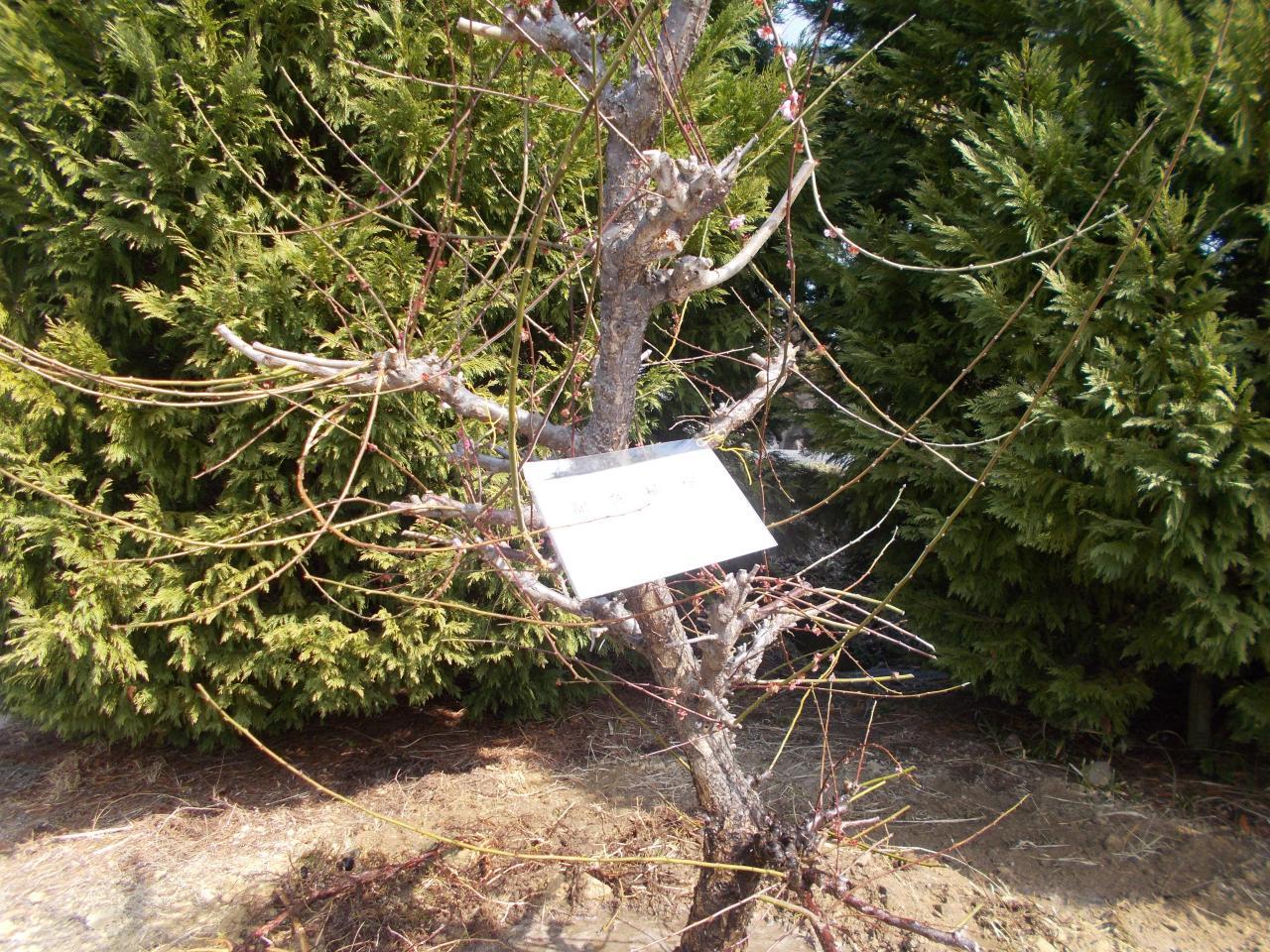 広田梅園の駐車場の角の一段高いところに植えました。日当たりもよく、とても目立つ場所です。