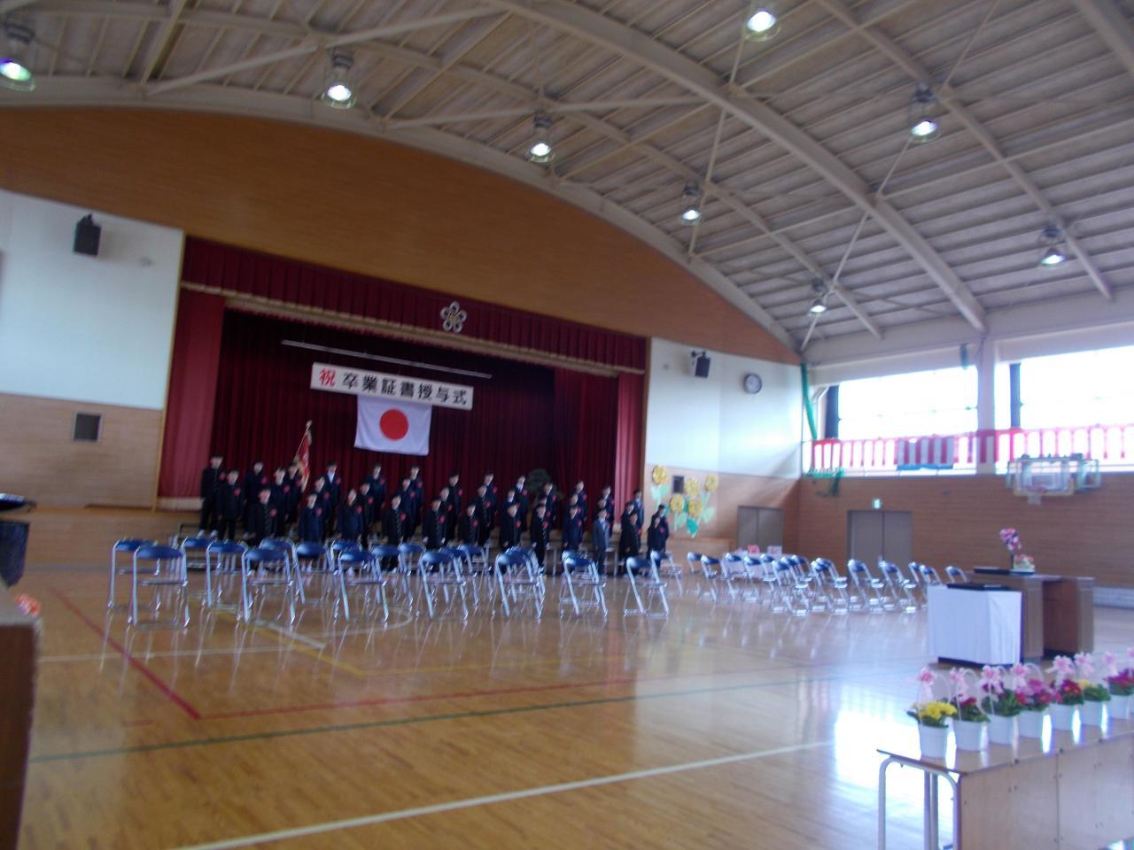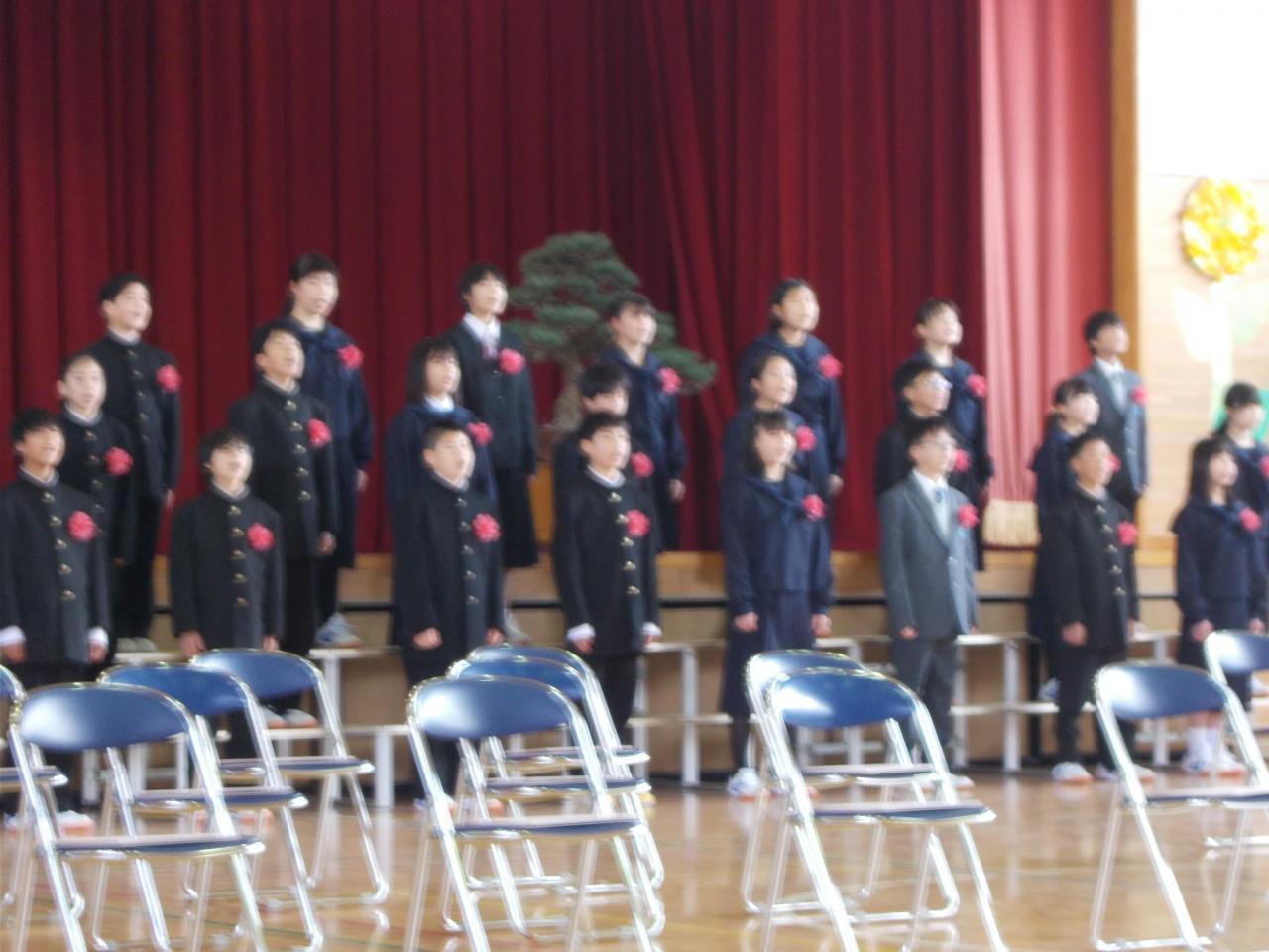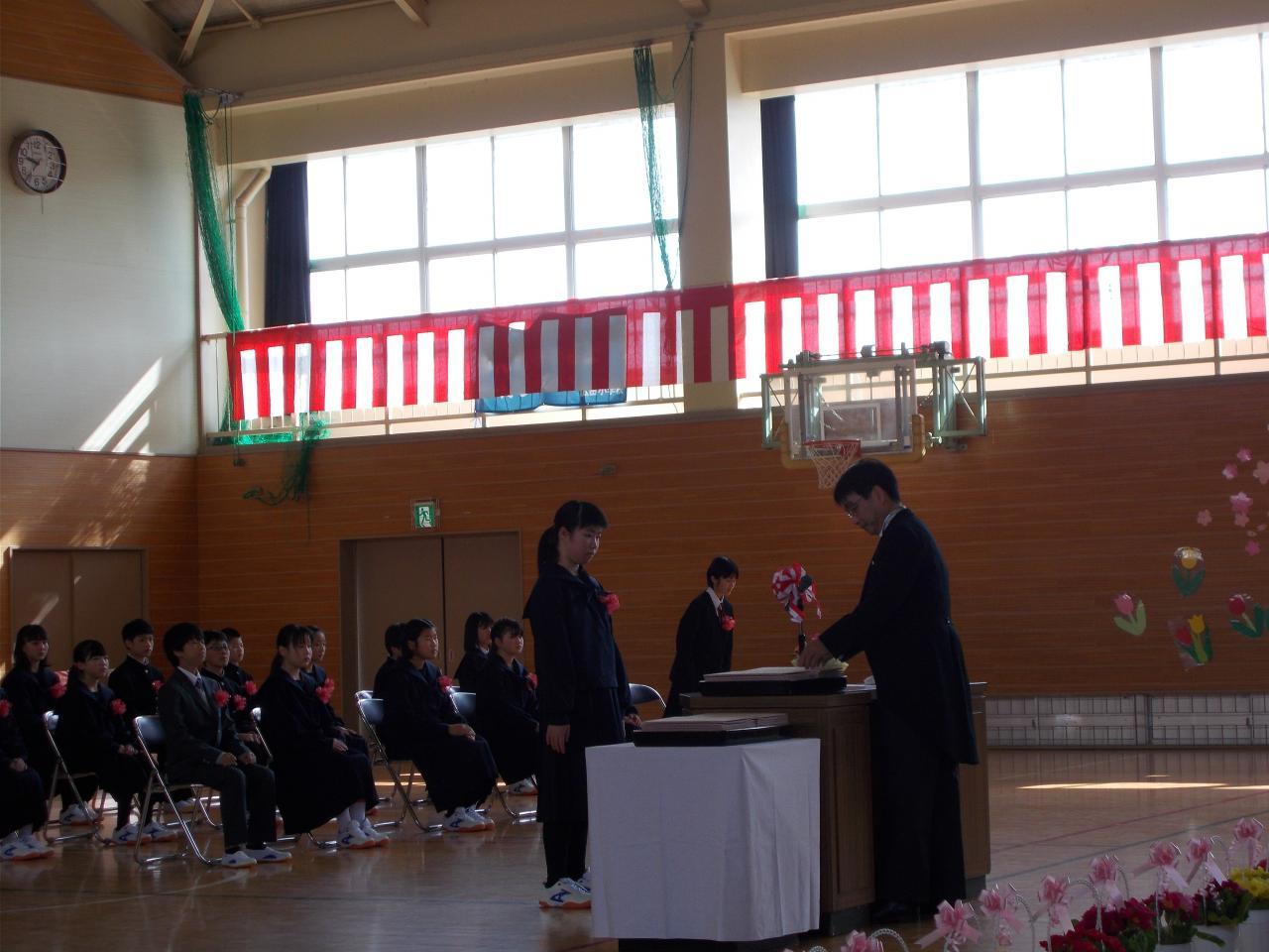 担任の先生の呼名にたいして、大きな声でしっかりと返事ができていました。卒業生、一人一人に校長先生から卒業証書が手渡されました。