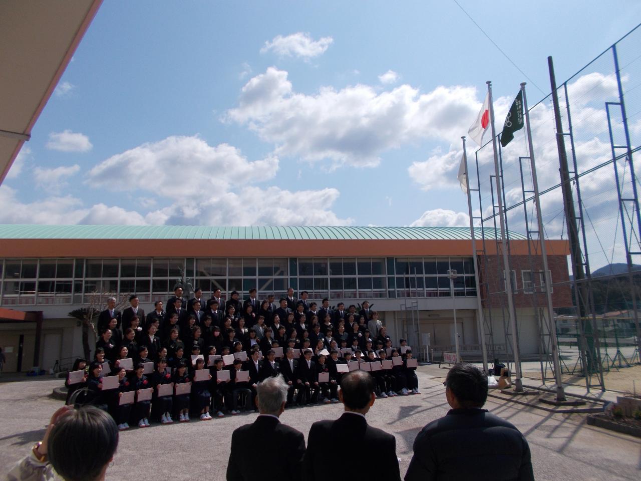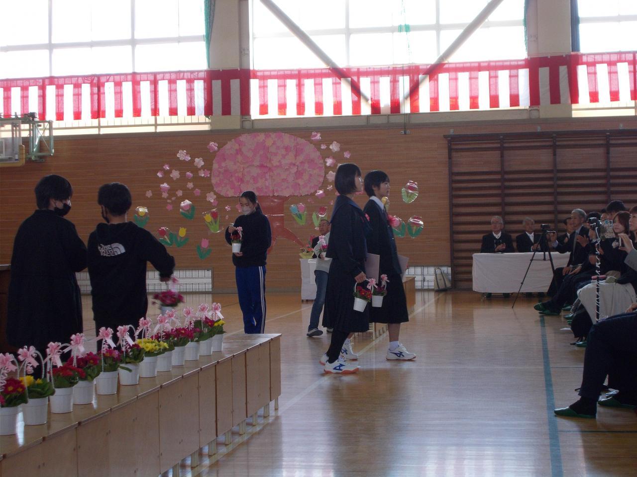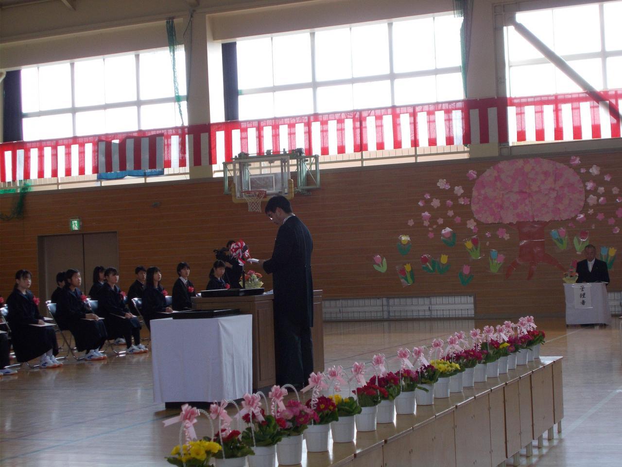 担任の先生の呼名にたいして、大きな声でしっかりと返事ができていました。卒業生、一人一人に校長先生から卒業証書が手渡されました。
