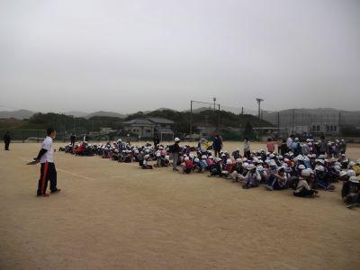 13:45~、集団下校のため、地区ごとに運動場に集合しました。