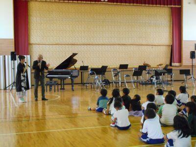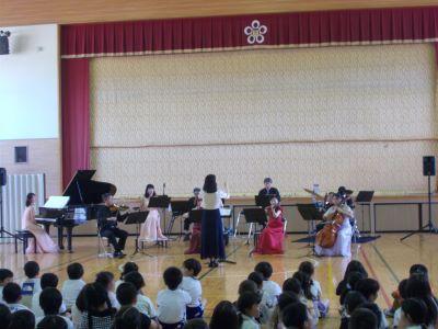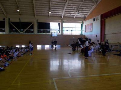本日4日(火)、5校時1~3年、6校時4~6年が、アンサンブル「希望」の方々の演奏を聴きました。