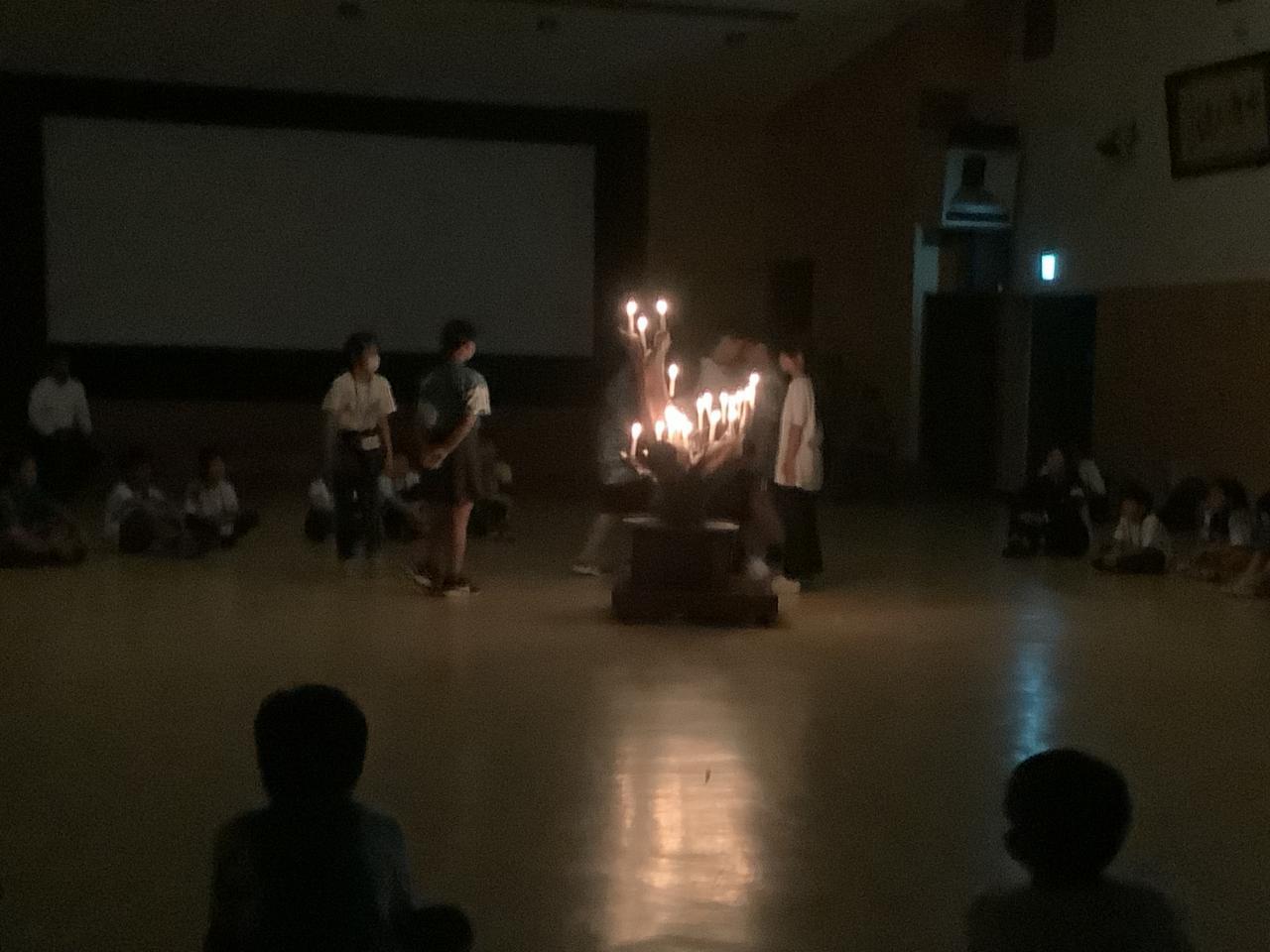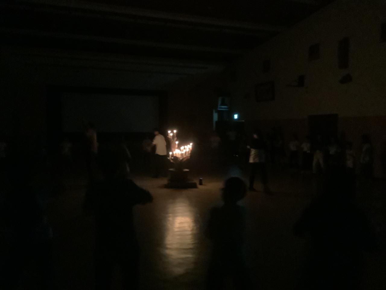 真ん中のローソク台を囲んで円になり、掛け声もありキレキレダンスでとても、盛り上がりました.気持ちも高まったところで、1班づつスタンツをしました.