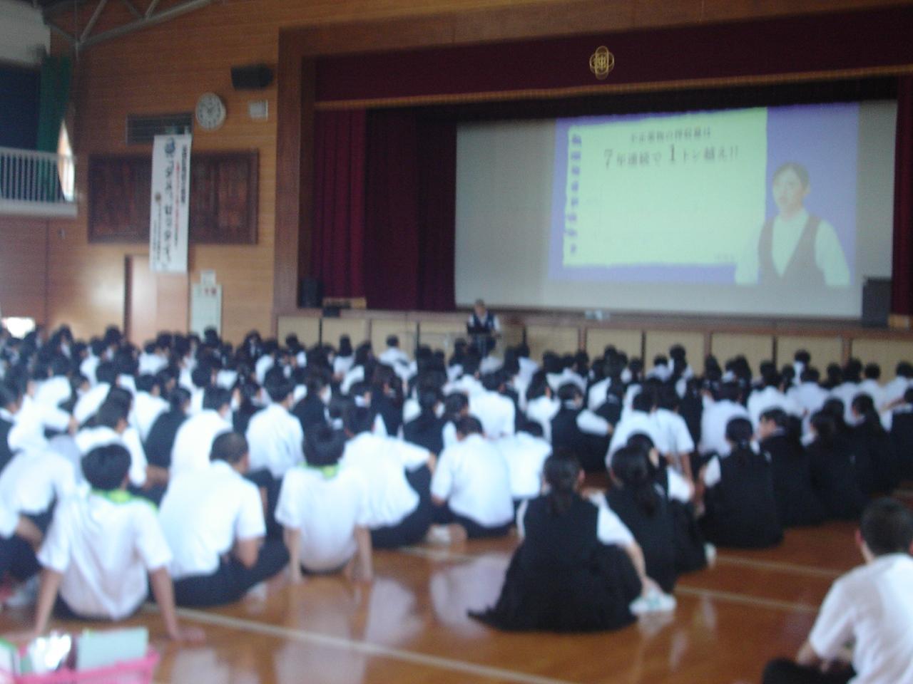 7月17日(水)5時間目、体育館で薬物乱用防止教室を行いました。