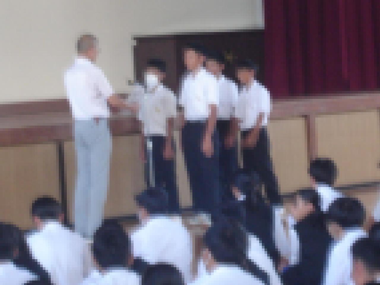 去る9月11日(火)の生徒集会で、体育大会、部活動の表彰伝達がありました。