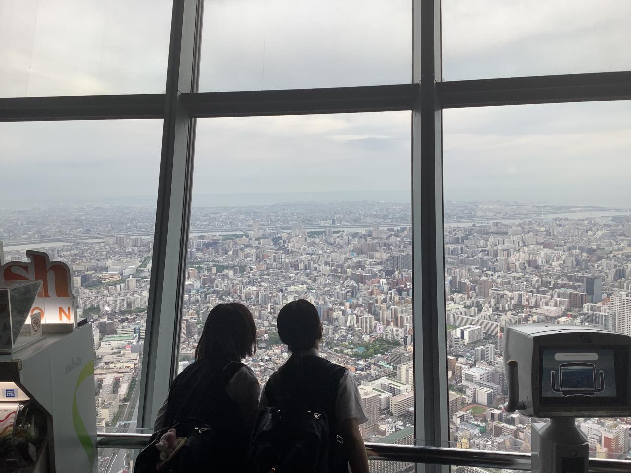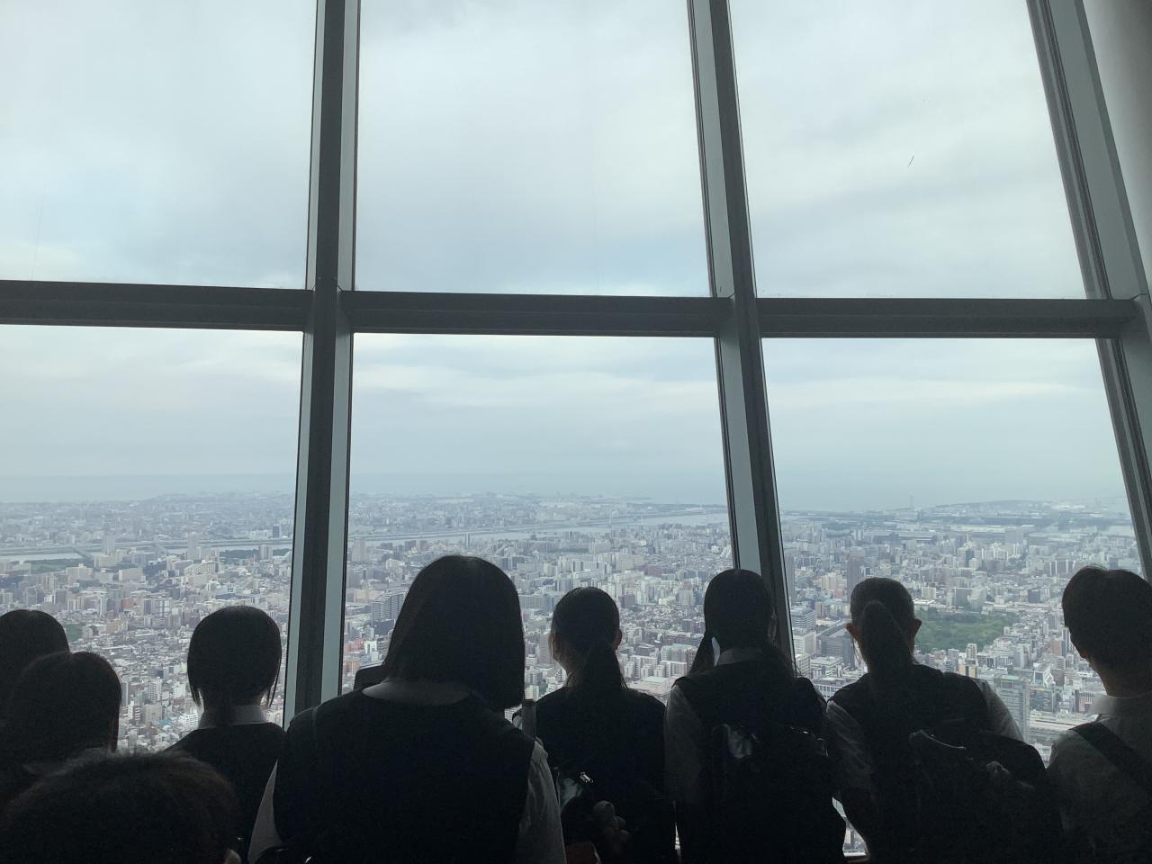 東京スカイツリーです。全ての班が無事に辿り着き、地上350mからの景色を眺めることができました。