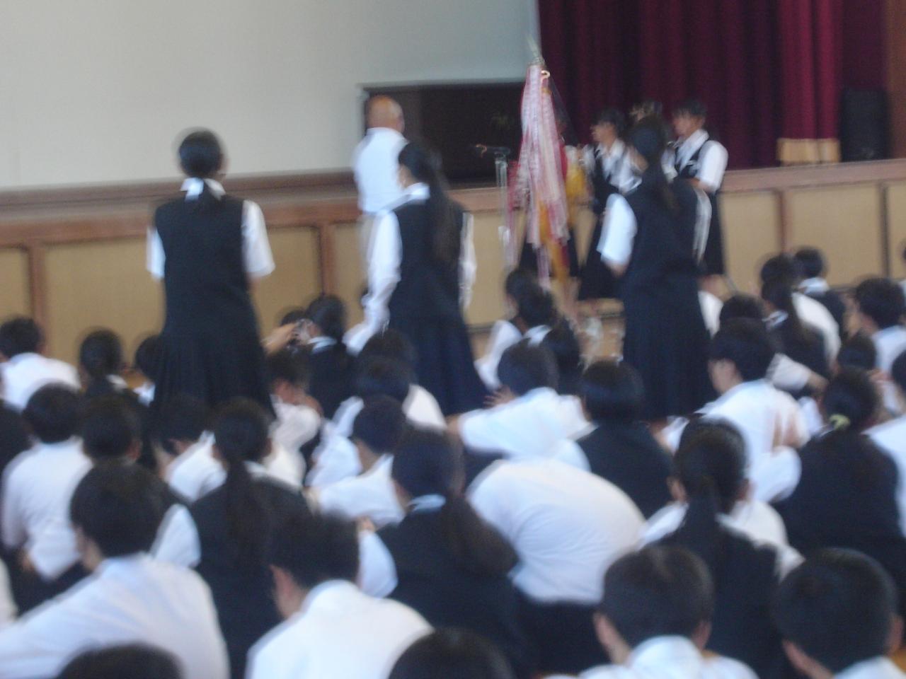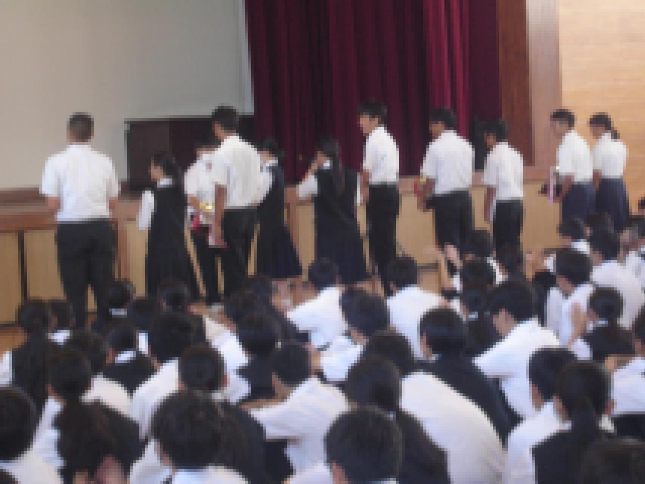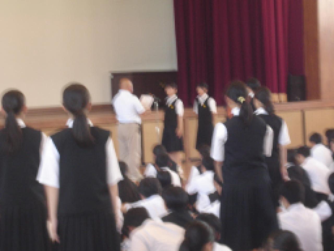 去る9月9日(火)の生徒集会で、体育大会、部活動の表彰伝達がありました。