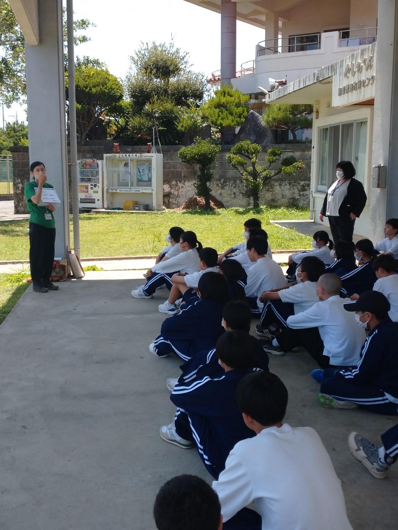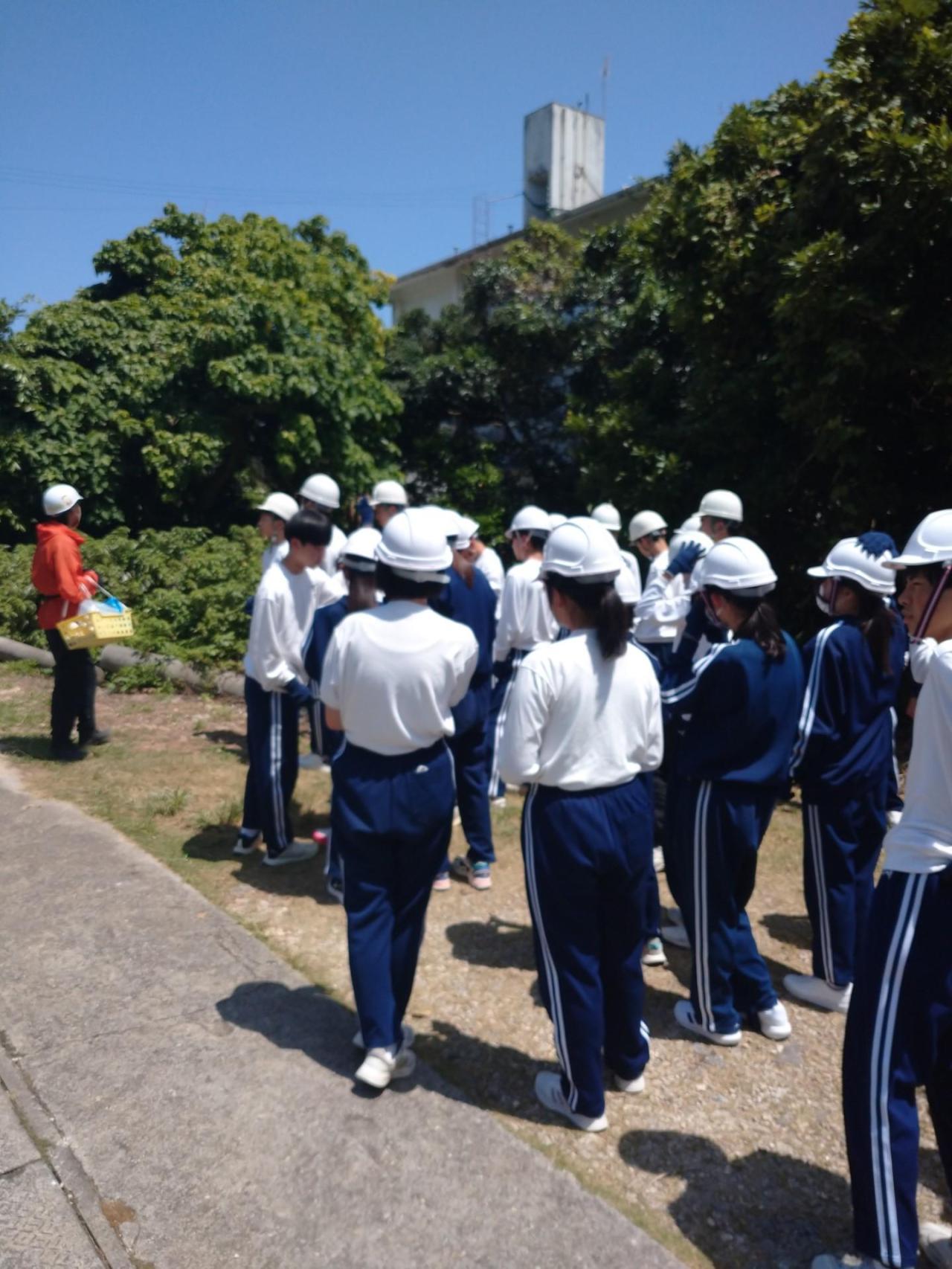 続いて、バスで30分ほど移動し、沖縄戦で使用されたガマ(壕)に入る体験を行いました。