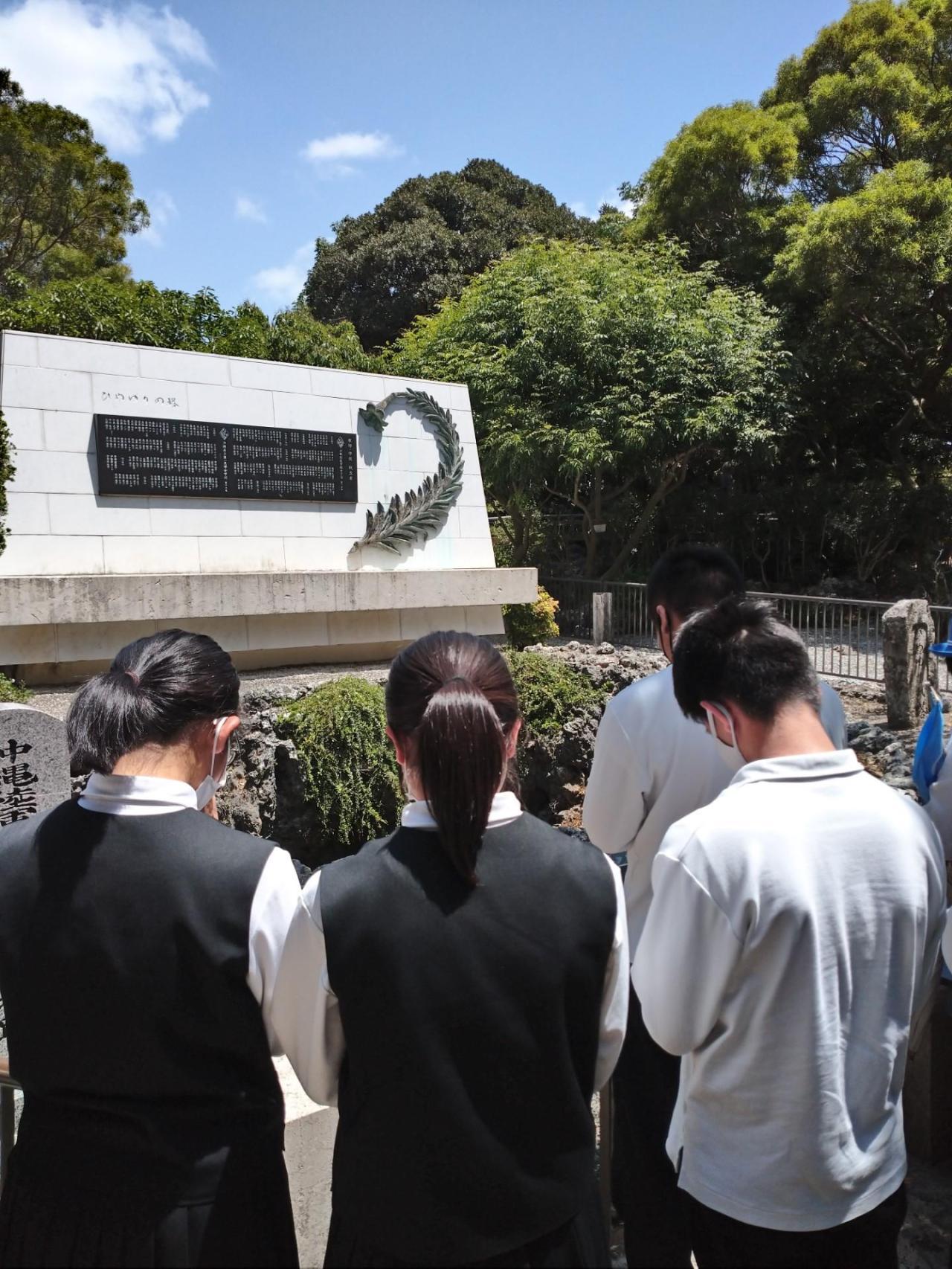 沖縄最初の訪問場所は「ひめゆり平和祈念資料館」です。沖縄戦で命を散らした「ひめゆり学徒隊」について学び、「ひめゆりの塔」に平和への祈りを捧げました。