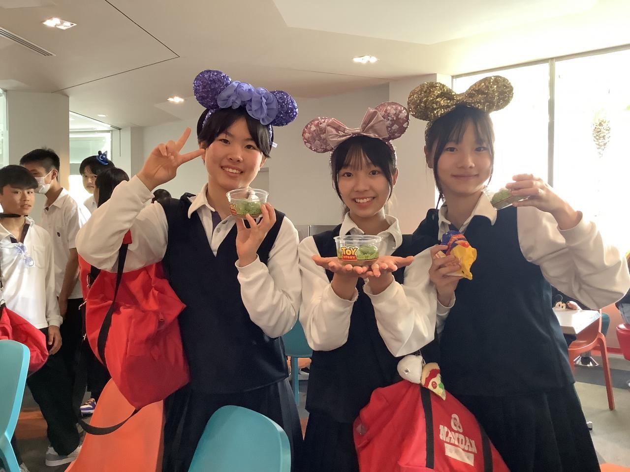 入り口でクラスごとに集合写真を撮った後は、班ごとに行動です。好きなグッズを買い、夢の国を堪能しました。みんな笑顔がステキです。