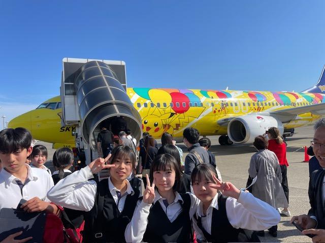 帰りの飛行機は、ピカチュウ仕様の飛行機でした。