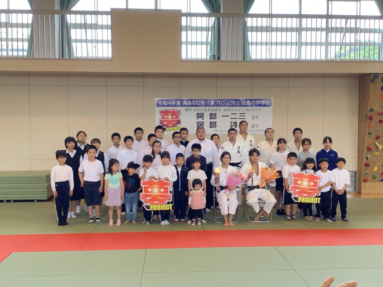 5月16日月曜日。本日、本校で「夢プロジェクト」が開催されました。講師はなんと東京オリンピック2020(2021)年で、柔道界史上初の兄妹同時金メダル獲得を達成した 阿部一二三選手、阿部詩選手 でした。ビッグな講師をお迎えし、オリンピックの秘話や小中学校時代の様子など、ユーモアを交えながら話をしてくれました。