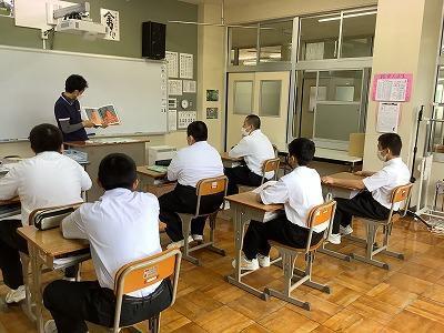 南あわじ市では、学習の基盤となる資質能力である言語能力の育成に向けて、読書活動の充実、習慣づくりを行い「読解力」の向上を目指しています。「絵本の読み聞かせ」もその取組の一つとして市内小中20校で学校の実情に合わせて取組を進めています。本校でも、先日、「一冊の本が子どもを変える~こんなときには、こんな絵本を~(黎明書房)」の著者、教育アドバイザーの多賀一郎先生を講師として小中学生に「読み聞かせ」をしていただき、その後、教職員は研修会を実施しました。「中学生に読み聞かせ??絵本??」という思いもあったのですが、「とにかく、始めてみよう」と本日スタートしました。「??」スタートでしたが、生徒たちが「読み聞かせ」を受けている様子を見ると、しっかりと聴き、受け止めていました。