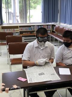 6月28日4校時。1年生が家庭科の授業で「地域の人々とかかわるときの注意点」について、高齢者疑似体験を交えながら考えました。